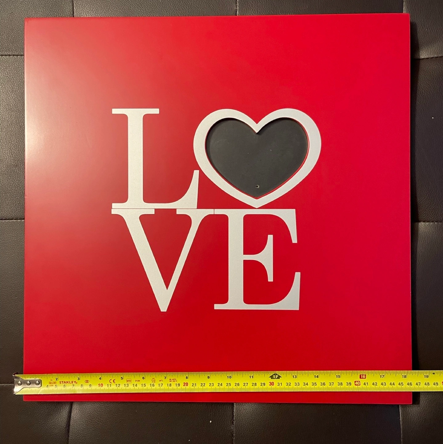 Photo is displayed in the heart. Can fit a 4x6 photo.