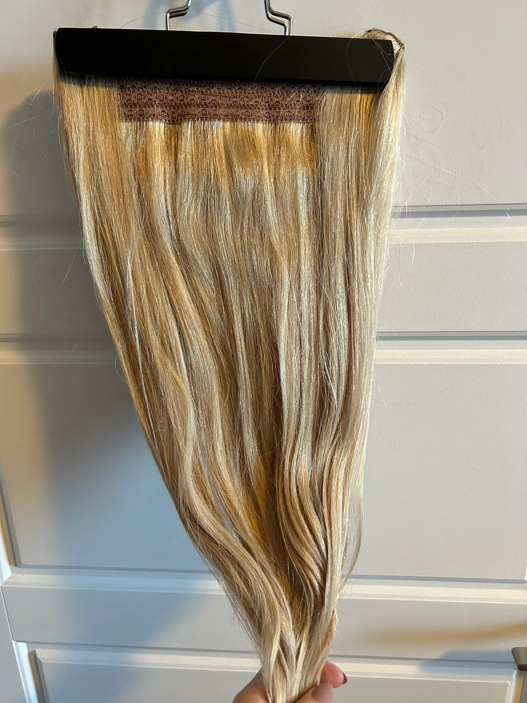 I purchased this blonde Halo extension on September 16, 2022. It was installed and curled on my head that day, I went home, took it off and never wore it again. It just isn’t for me.