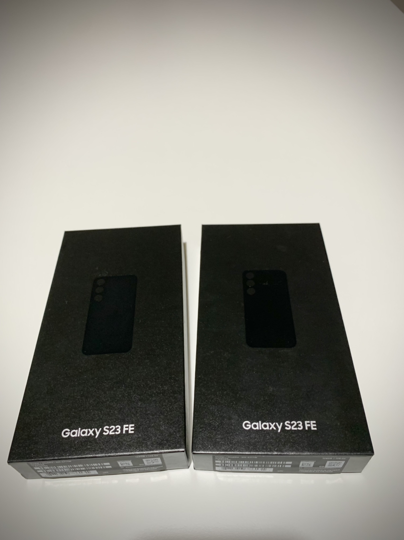 Two brand new sealed Samsung Galaxy S23 FE 128GB phones unlocked, Graphite color.