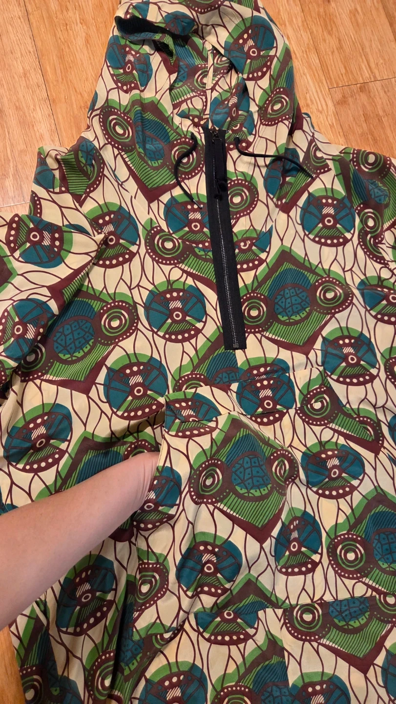 Selling a 100% silk Marni hooded jacket in size M. It features a unique and eye-catching pattern. The jacket is in great condition and perfect for adding a stylish touch to your wardrobe!