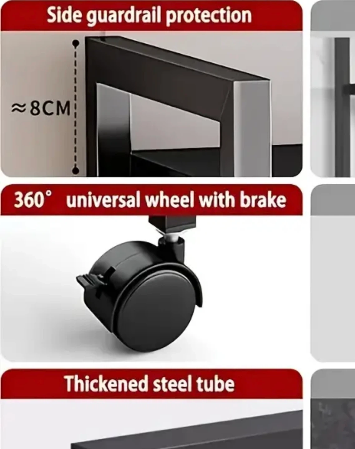 The rack has 360° universal wheels with brakes, making it easy to move and secure.