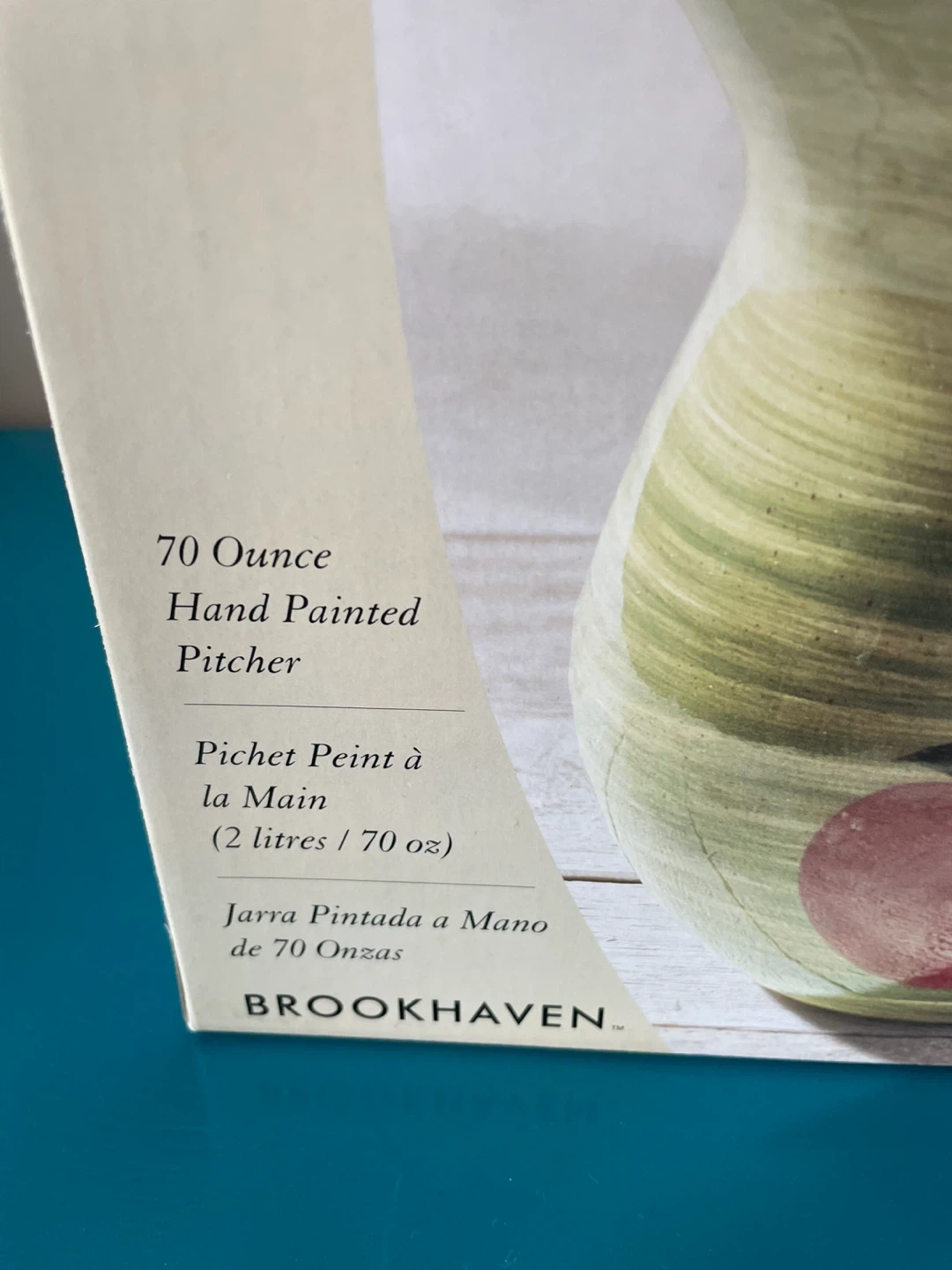 Features: Hand-painted glaze; large 2-liter capacity; sturdy ergonomic handle.