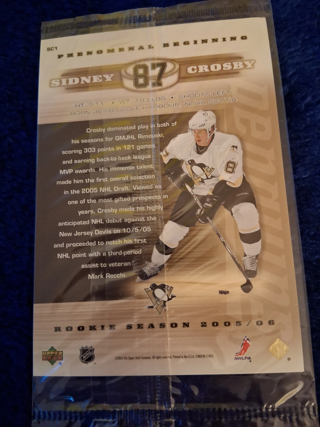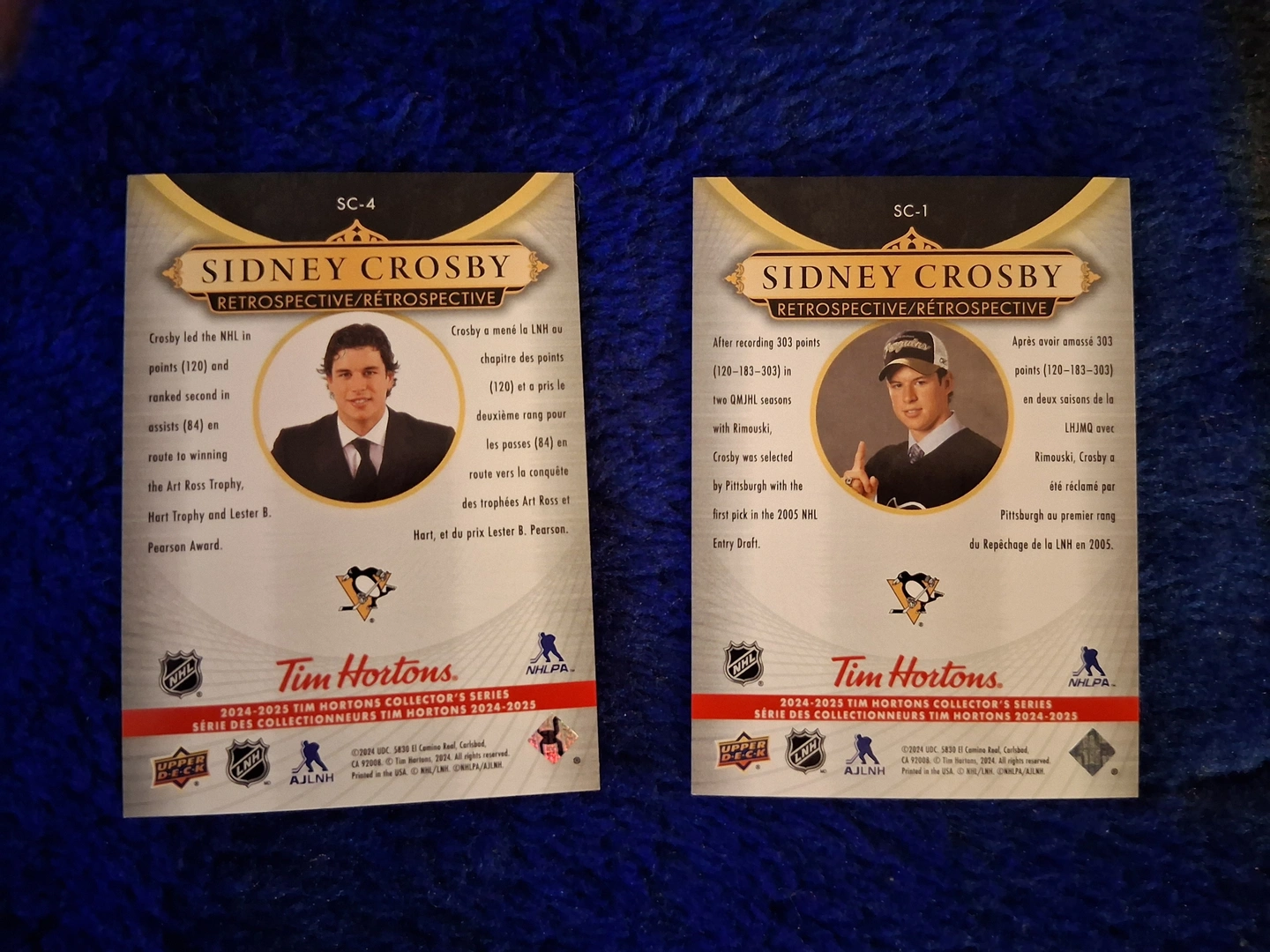 I am selling 2 MINT CONDITION 20 Card Sets of 2005-06 Sidney Crosby Phenomenal Beginnings Hockey cards, 1) 2005-06 Sidney Crosby Phenomenal Beginnings JUMBO Hockey Card Still sealed, and 2 MINT CONDITION TIM HORTON Sydney Crosby Retrospective Hockey Cards # SC-1 & SC-4.