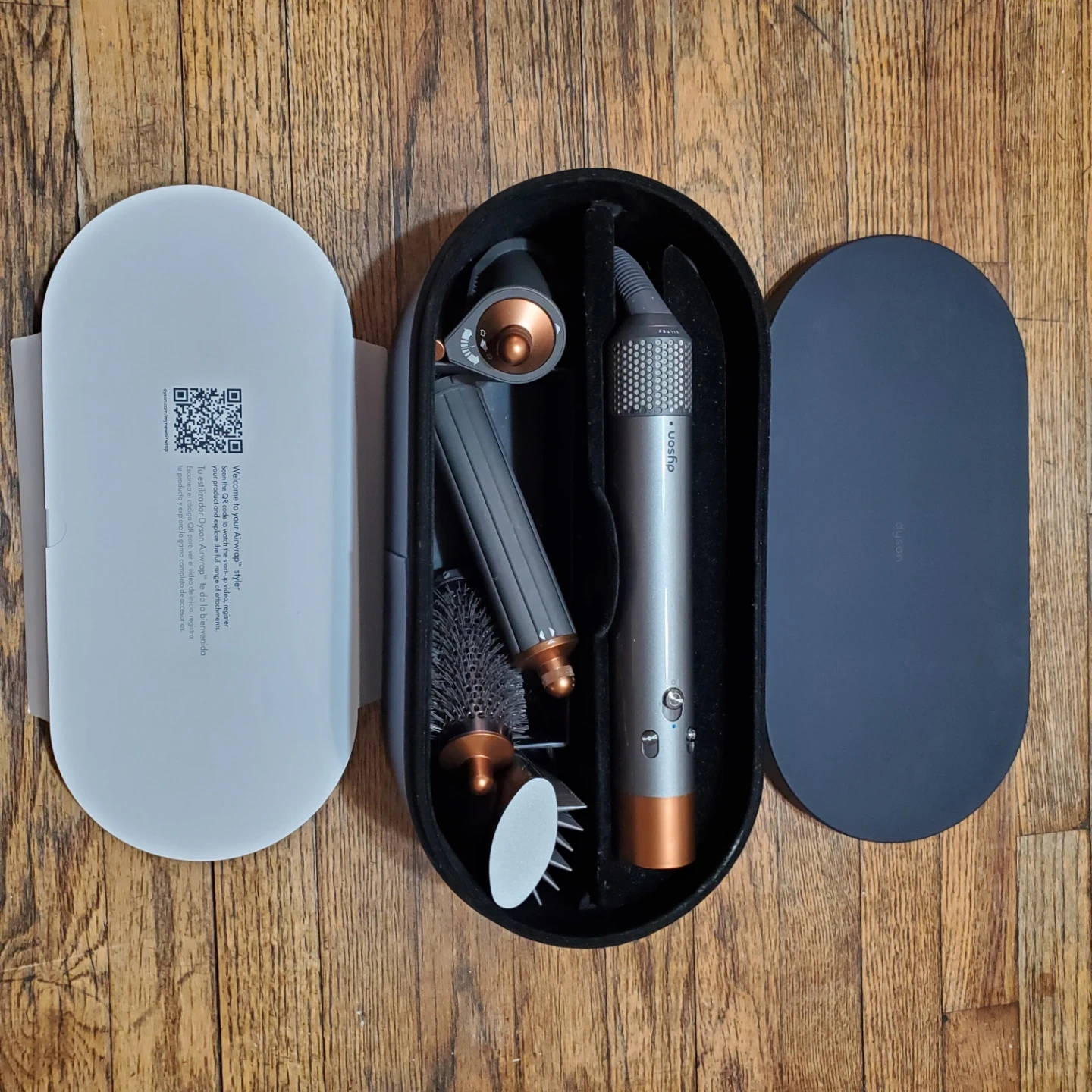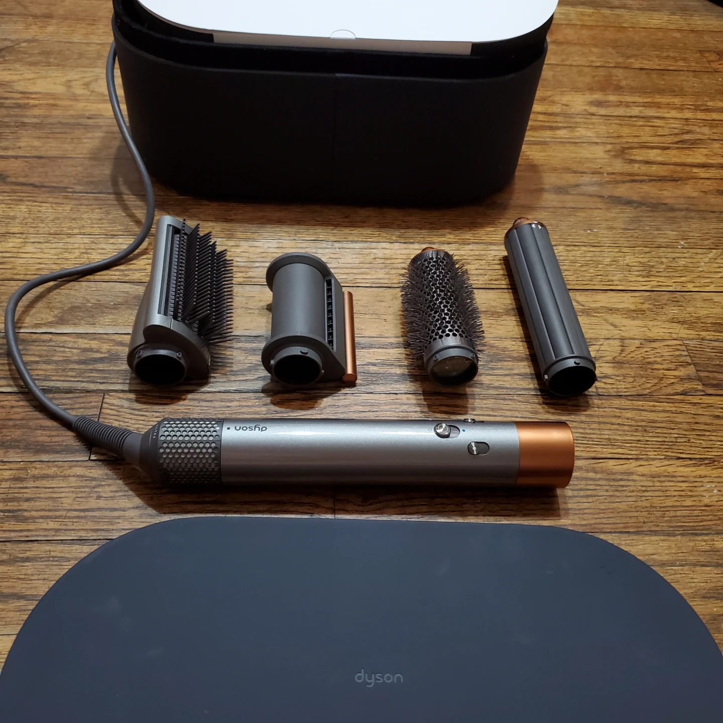 This Dyson Airwrap Complete Styler comes with multiple attachments for various styling needs. It includes the main unit, brushes, and barrels. This set is housed in a convenient original storage case. (Original Retail at $649.99 plus tax)