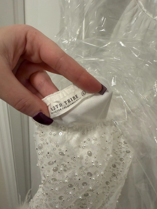 New. Worn once and went back in my closet. Paid originally over $200 for the dress. 12th Tribe brand. Size L - but fits M/L.