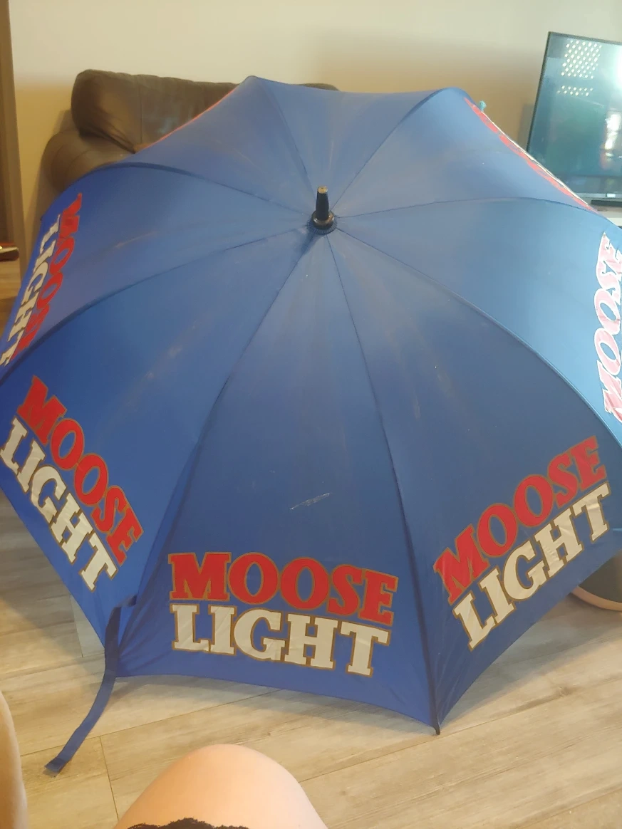 Selling a blue Moose Light umbrella! It's in good condition and ready to keep you dry on those rainy days. Fits two or more people