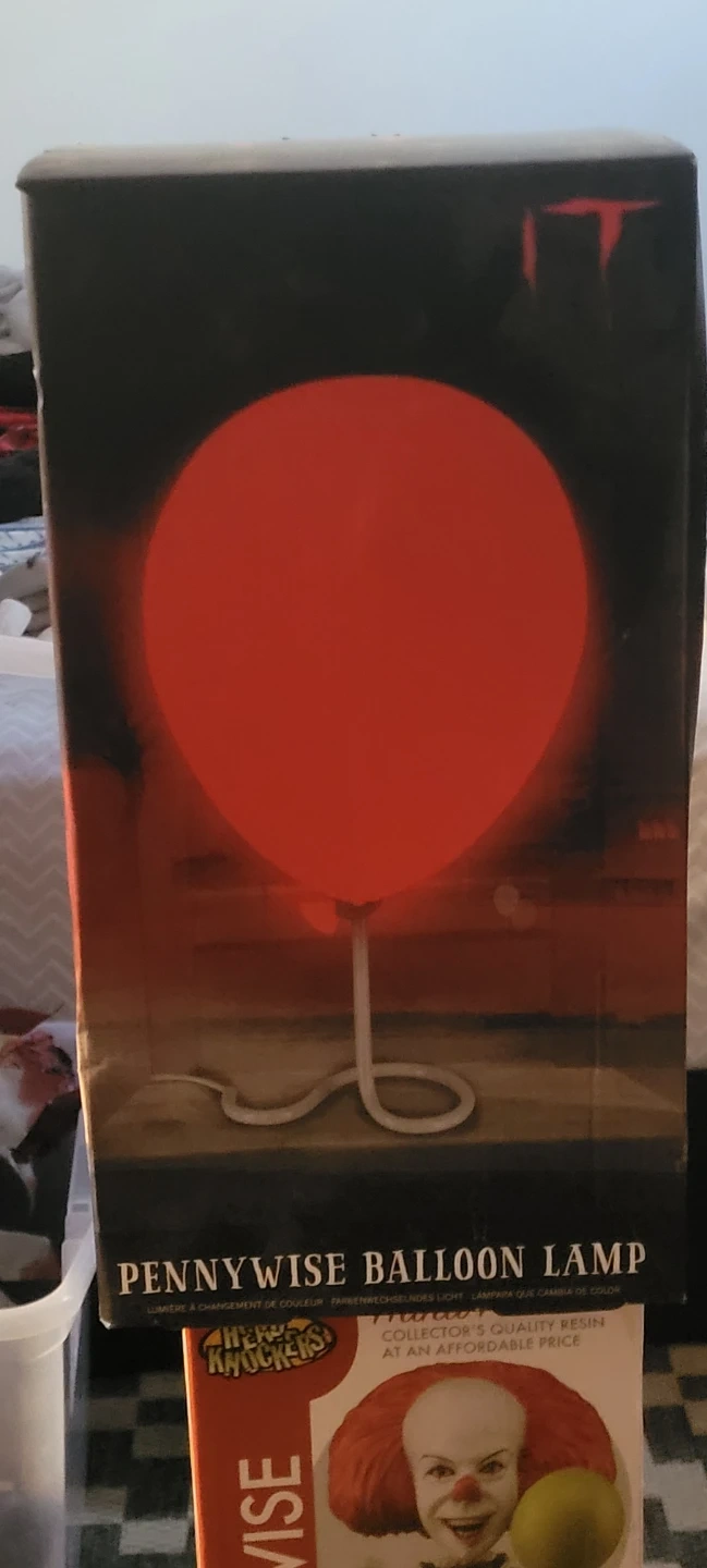 This is the Pennywise Balloon Lamp. It's made of collector's quality resin. This lamp changes colour!