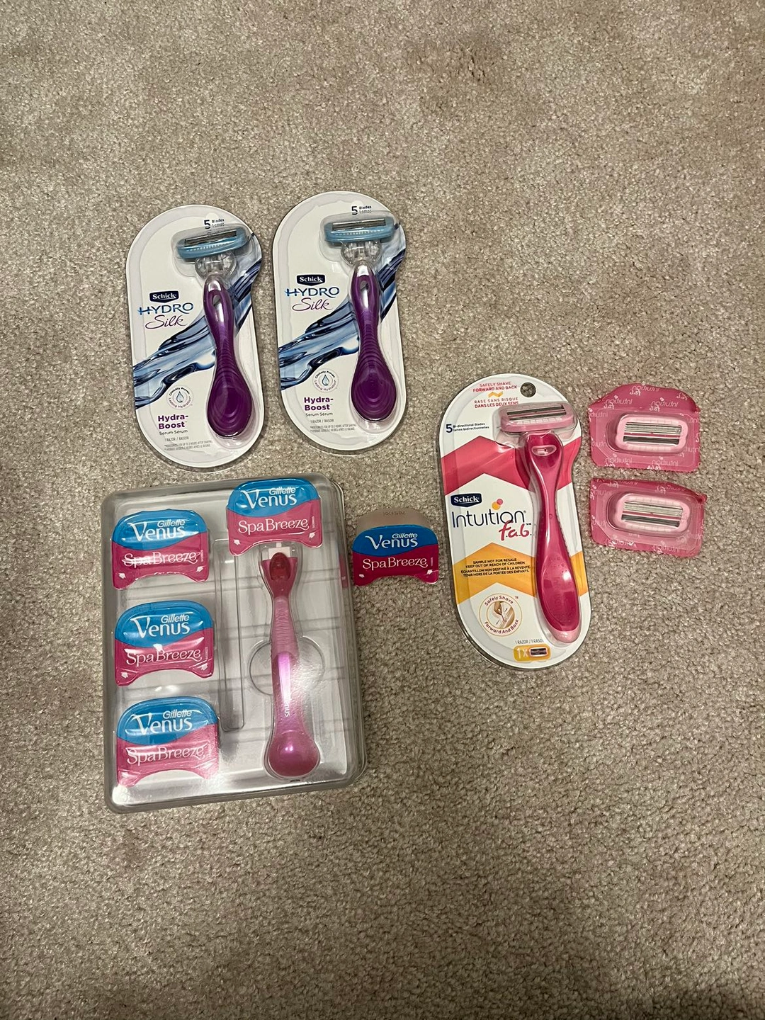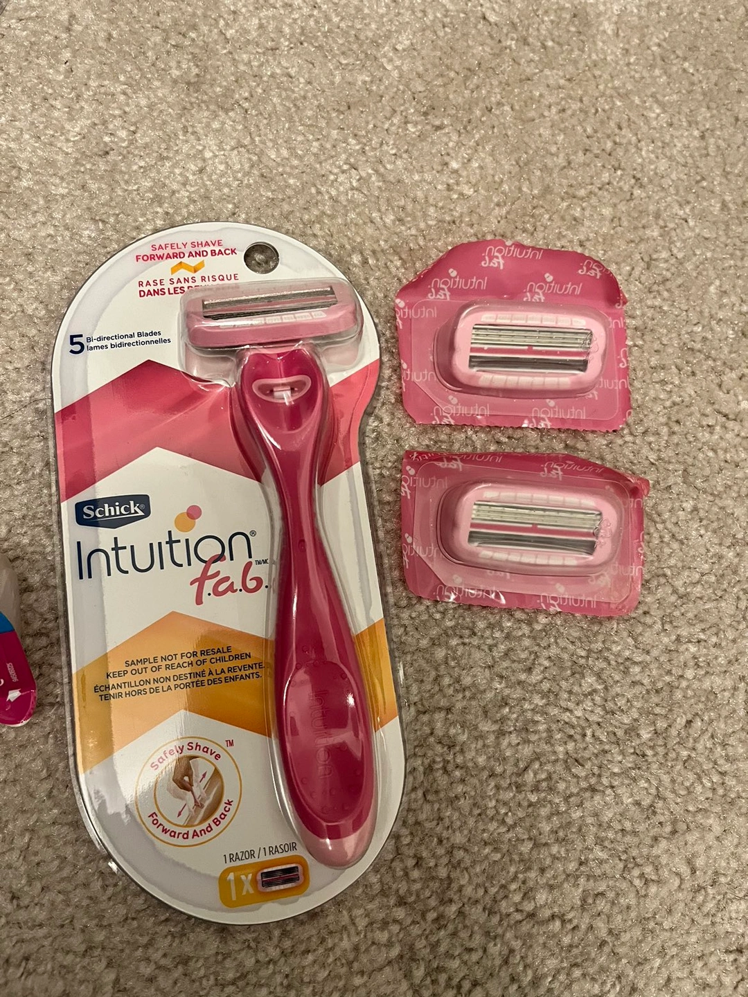 - 1 Schick intuition fab razor handle with cartridge and 2 extra cartridges