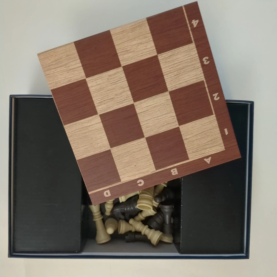 Check! Practice your opening gambits or play your friends with this small, lightweight chess set.