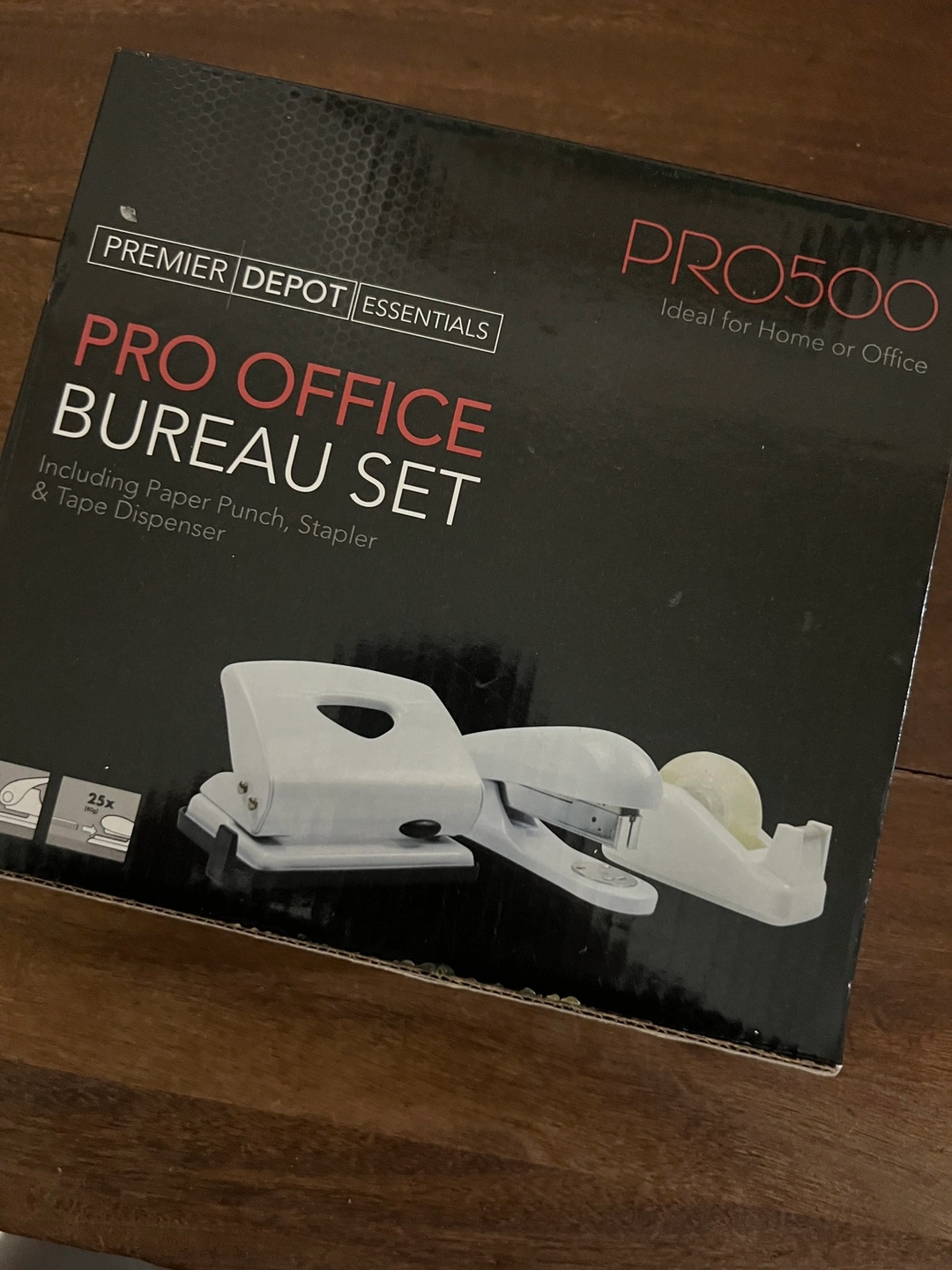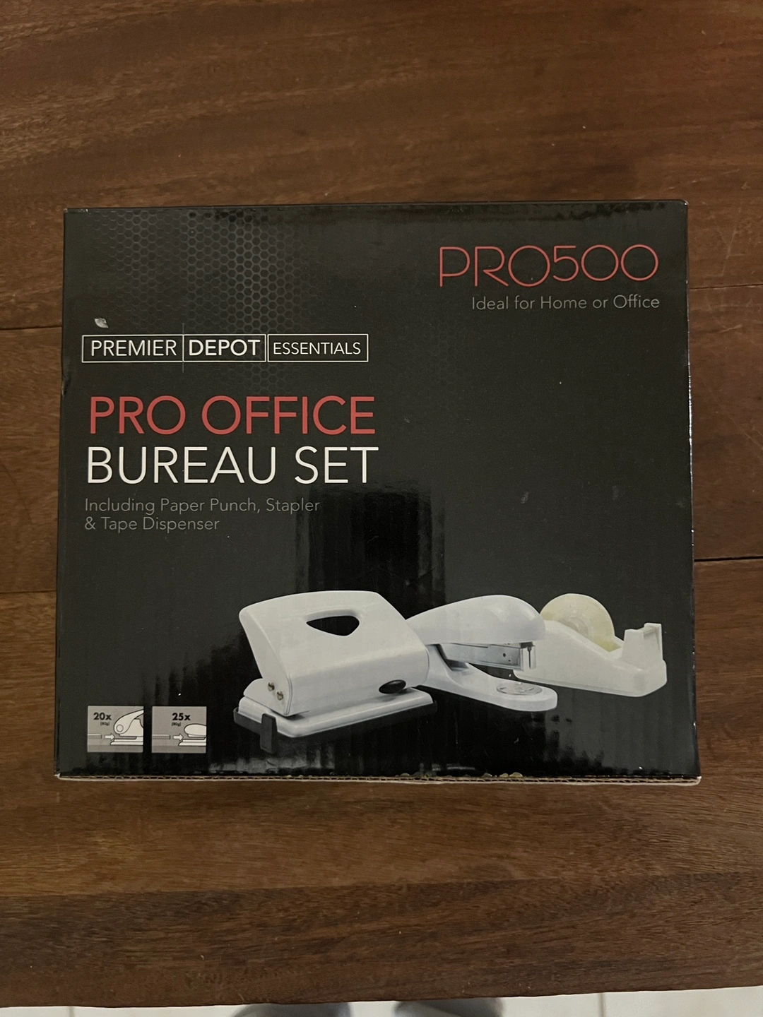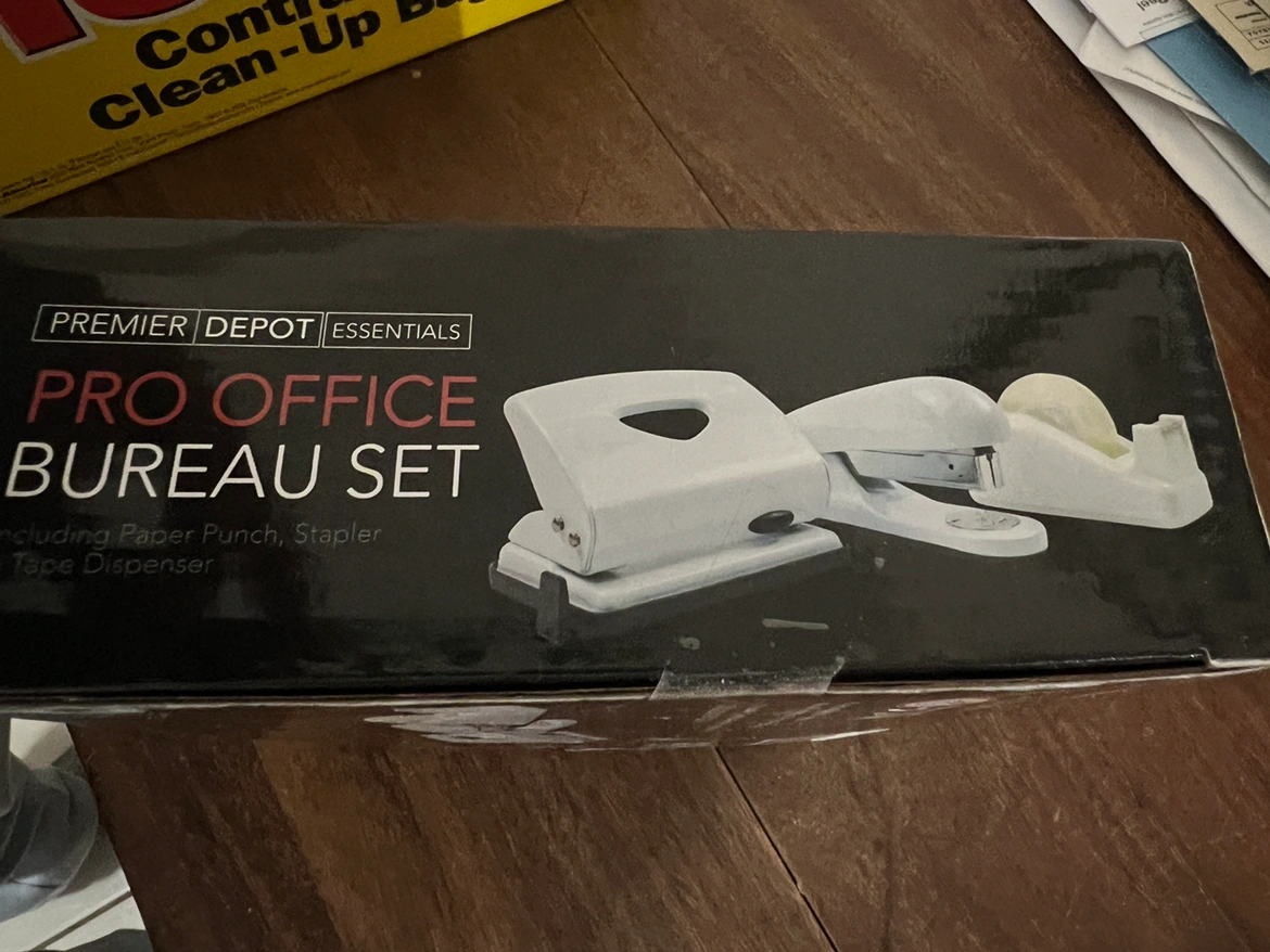 Unopened office set - as you can see it’s still taped. Don’t know where this came from, just sitting in my house. Box has all the details.