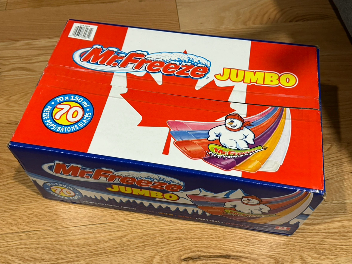 Giving away a box of jumbo Mr Freeze freezies / ice pops. 70 in the box.