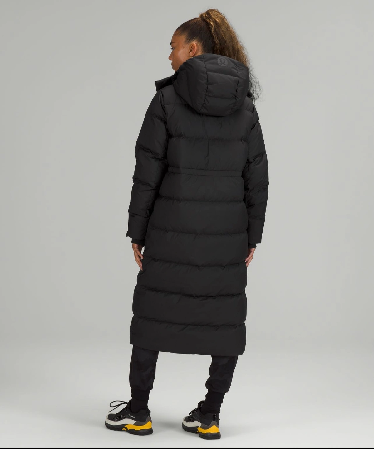 Long length Puffer with cinchable waist.