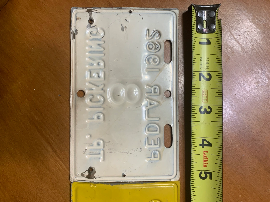 Very rare metal 1959 & 1962 TOWNSHIP OF PICKERING PEDLAR plates
