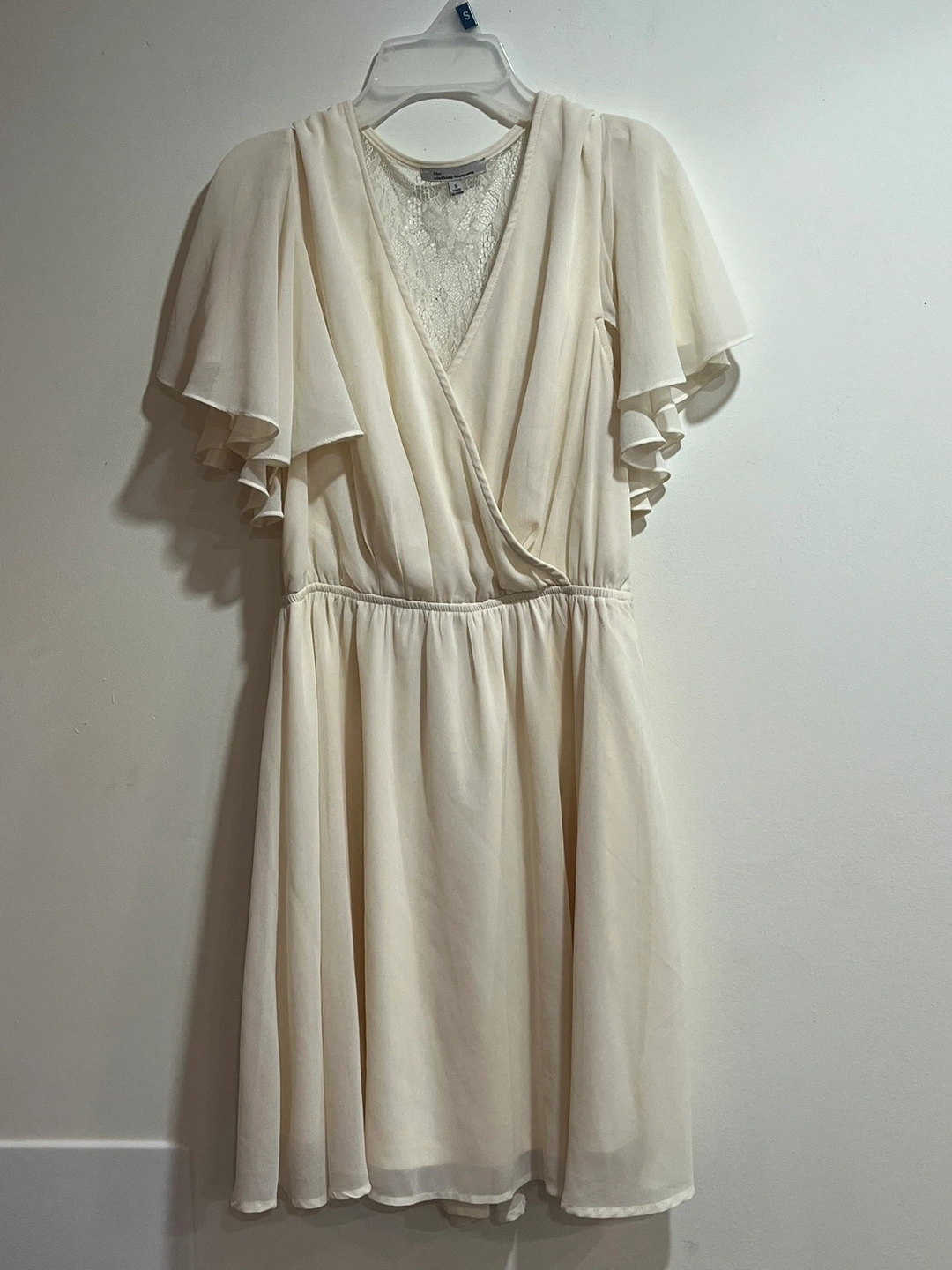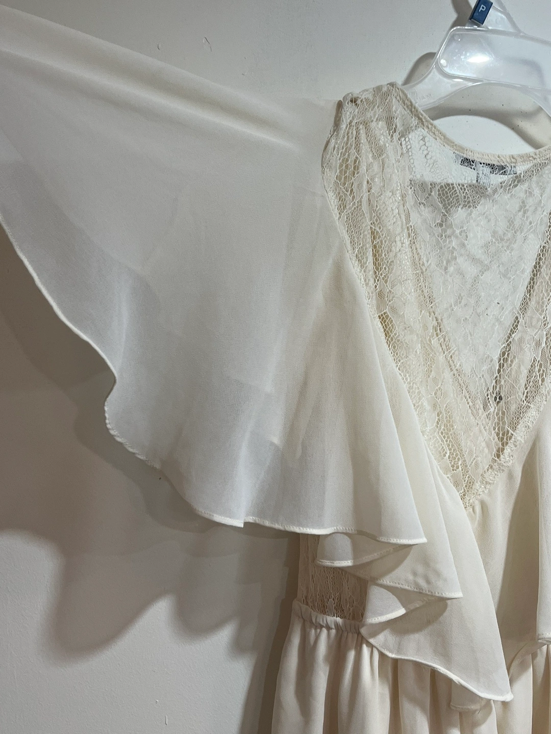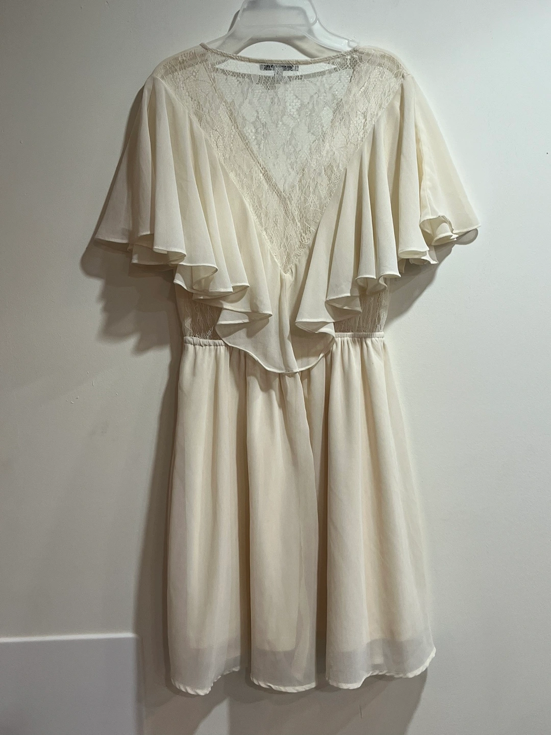 Pickup Brampton or downtown Toronto Stunning cream dress featuring lace detailed back. Perfect for summer parties, events. Excellent condition. Snap button on the V neck Butterfly sleeves & flutter all the way down to the back Lace detail on the back The last 2 pictures are not mine but the same concept of the dress to give an idea how it would look