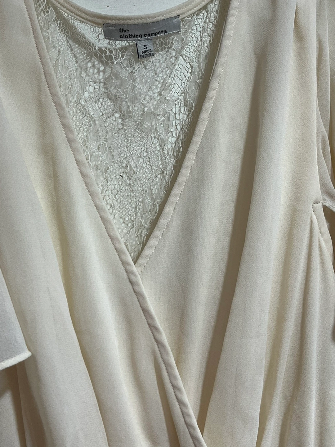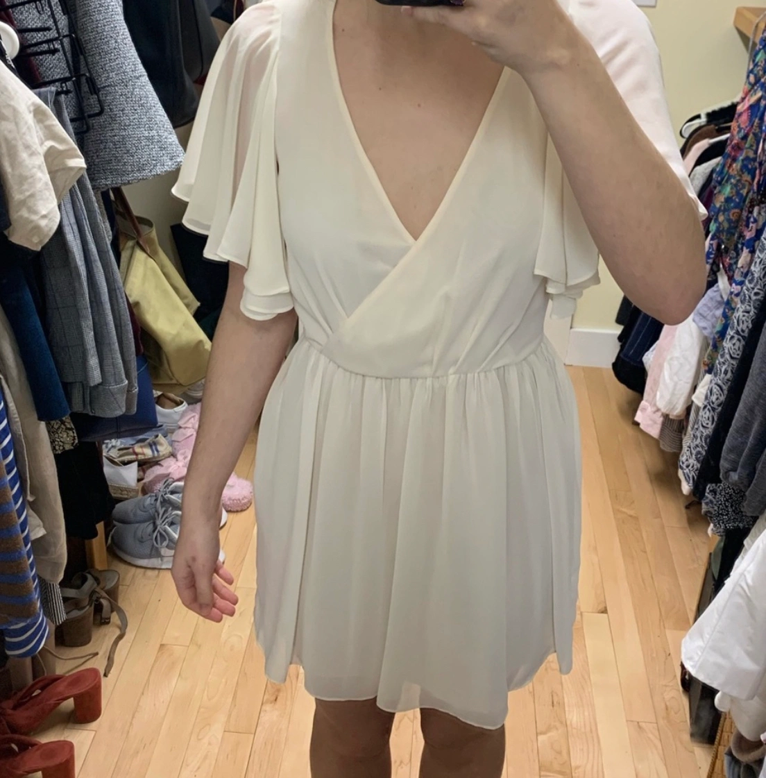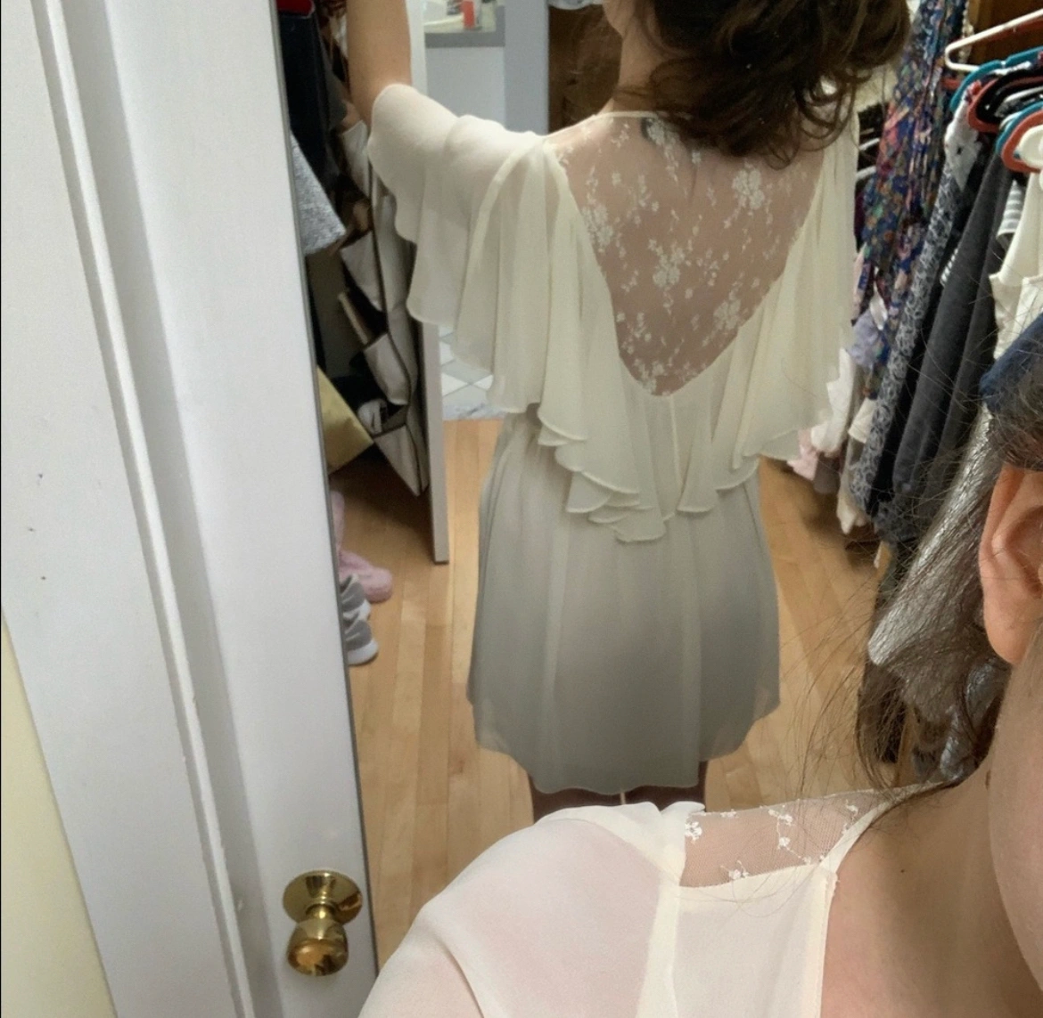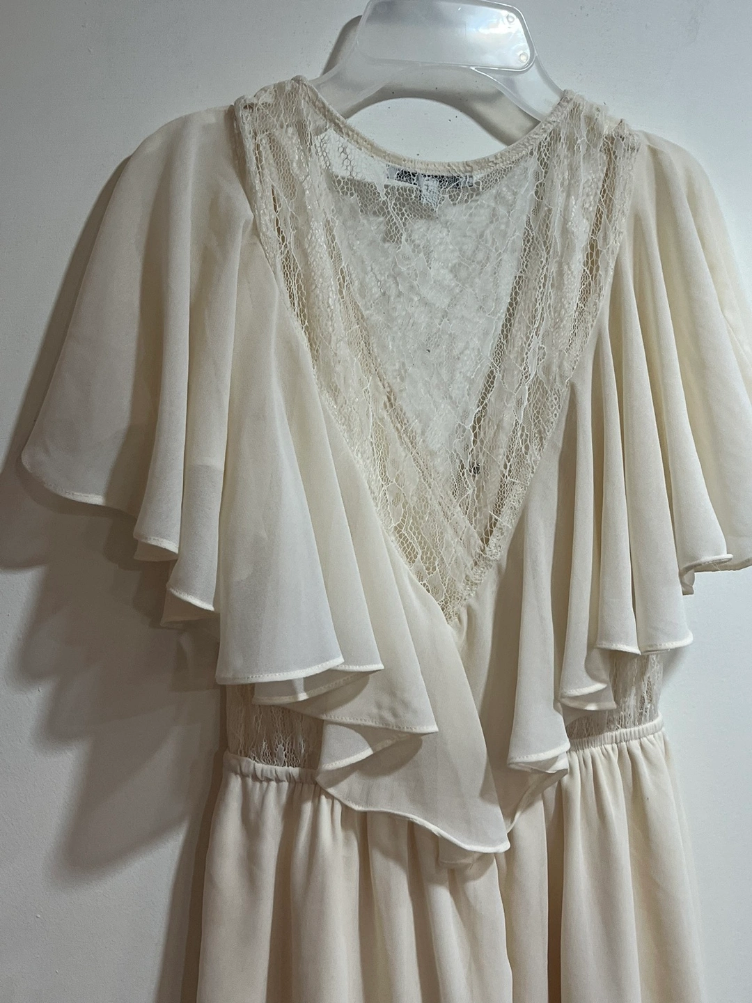 Pickup Brampton or downtown Toronto Stunning cream dress featuring lace detailed back. Perfect for summer parties, events. Excellent condition. Snap button on the V neck Butterfly sleeves & flutter all the way down to the back Lace detail on the back The last 2 pictures are not mine but the same concept of the dress to give an idea how it would look