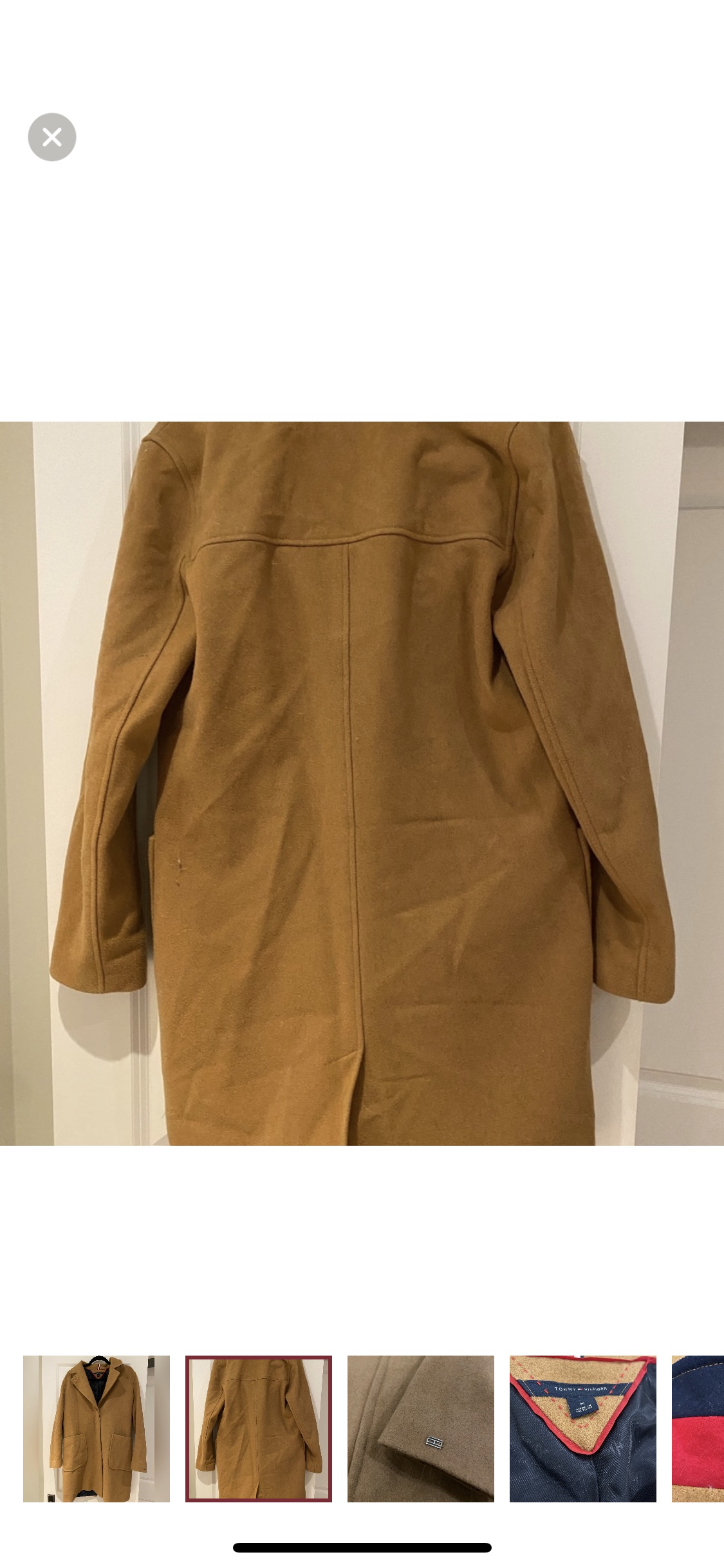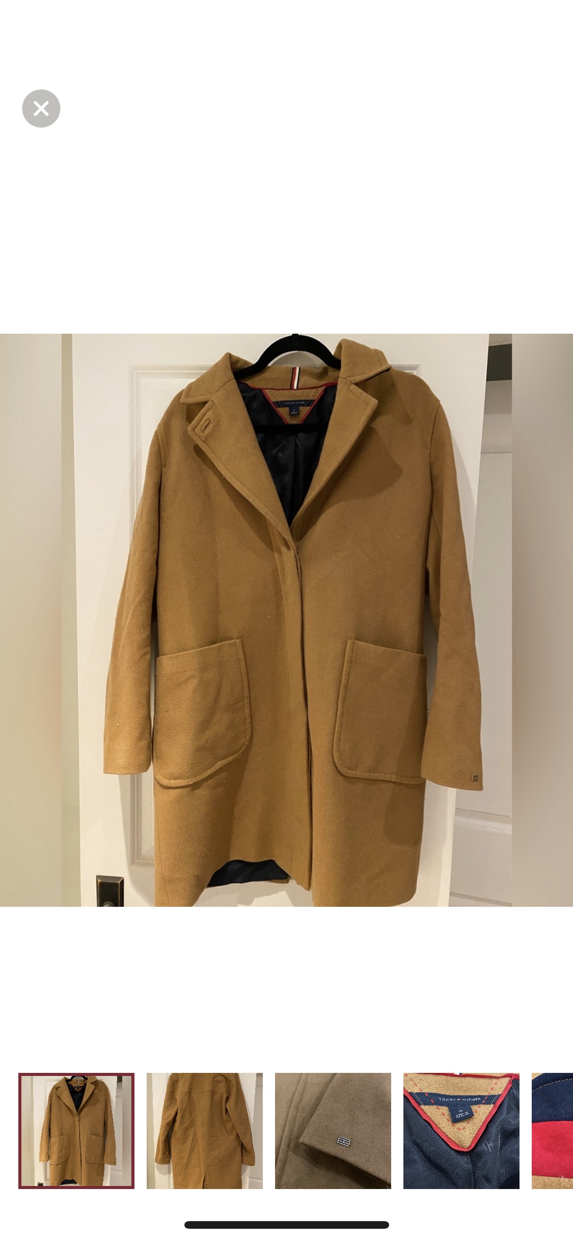 TOMMY HILFIGER Classic Single Breasted Wool Blend Coat in a Size Medium, in a countryside khaki camel colour