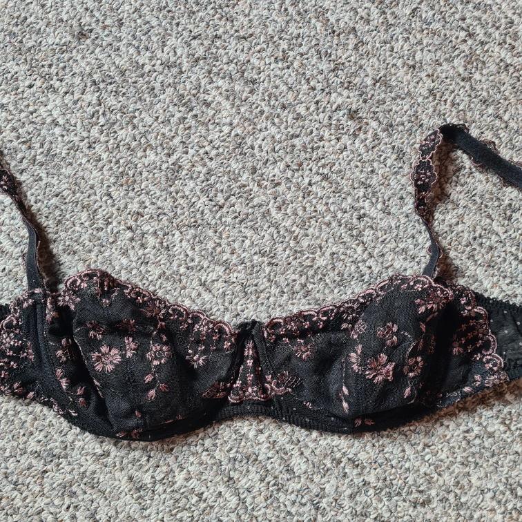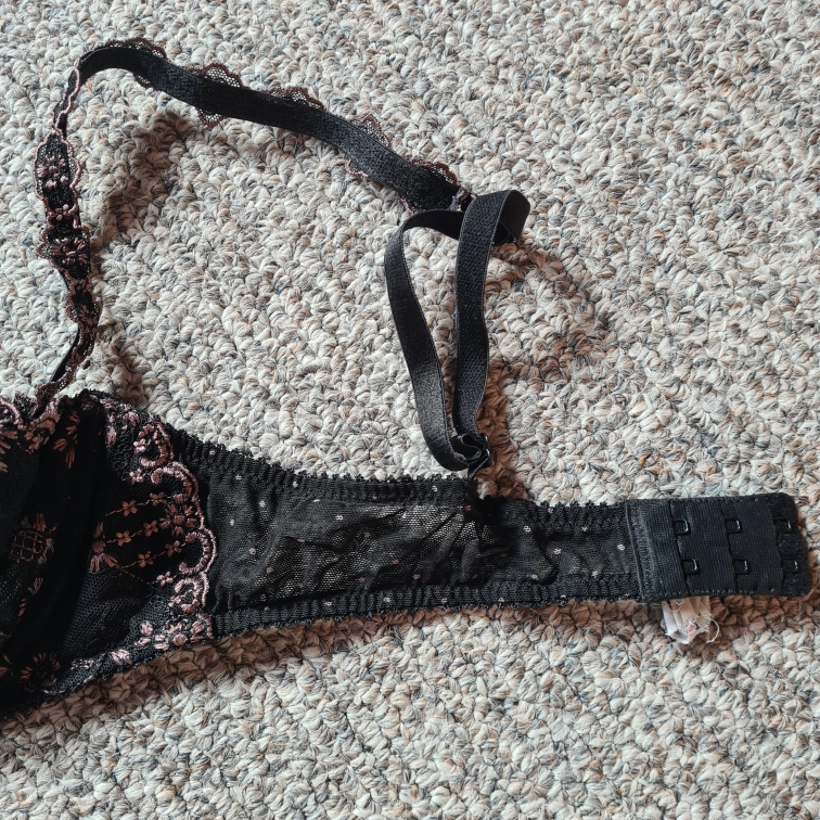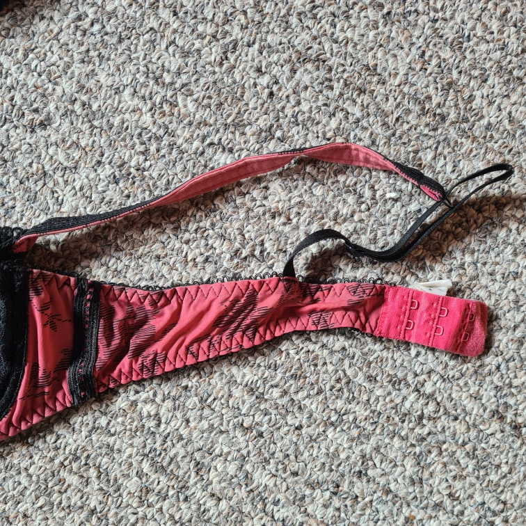 Bundle of 2 bras. 1 is black and pink. 1 is black with pink pattern.