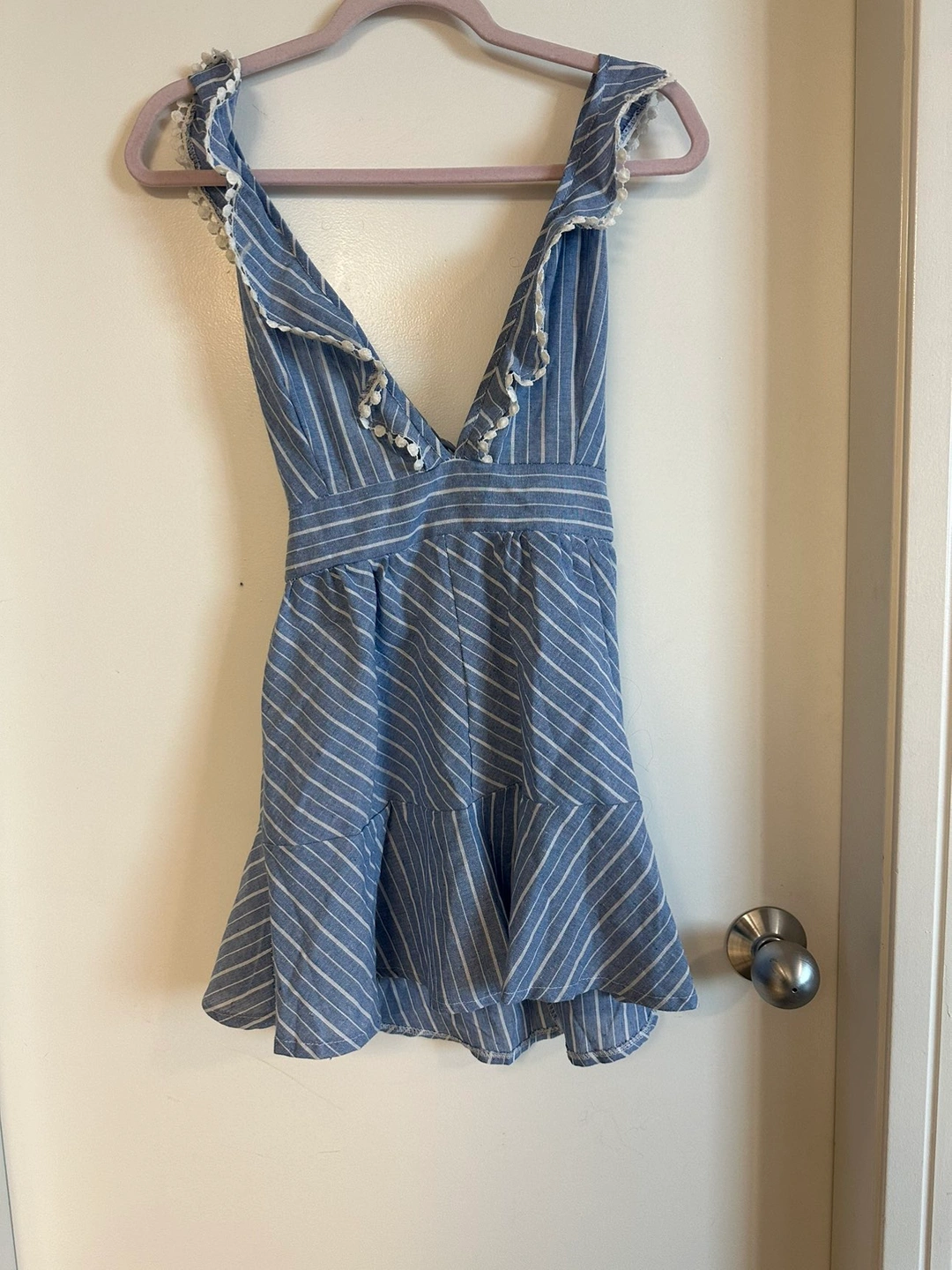 Deep V neckline Frilled hem Strappy lace-up back Never worn