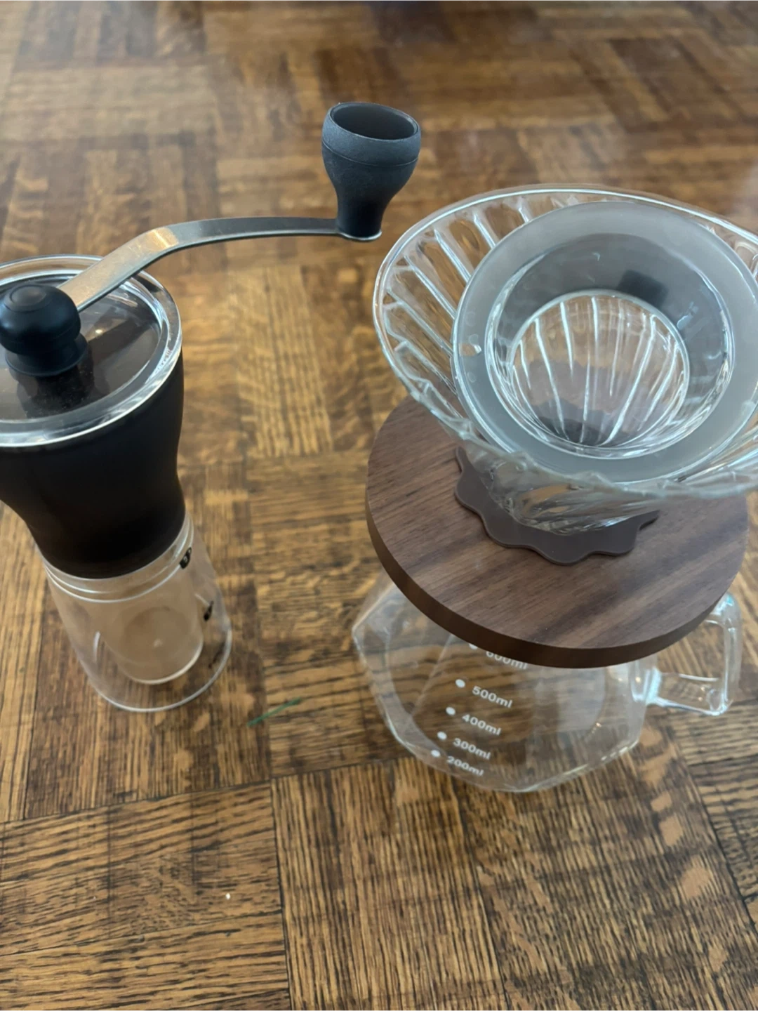 Manual Coffee Grinder and Glass Pour-Over Coffee Maker Set