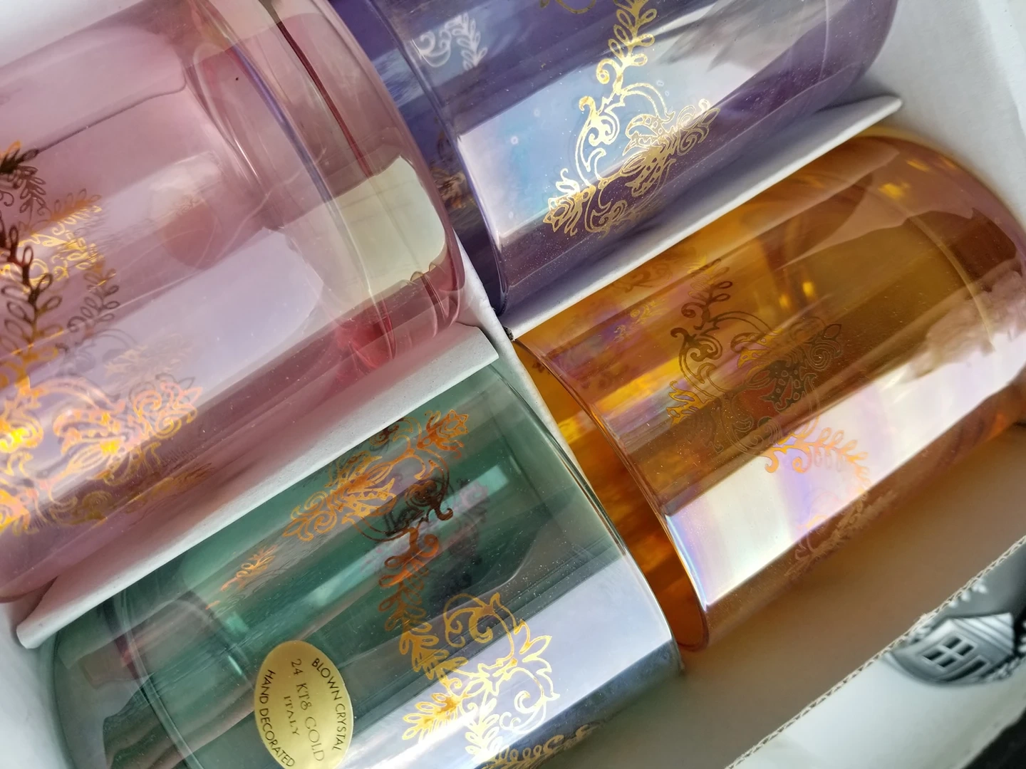 14k handcrafted Vintage drinking glasses. 8 oz. made in Italy. Brand new in boxes.