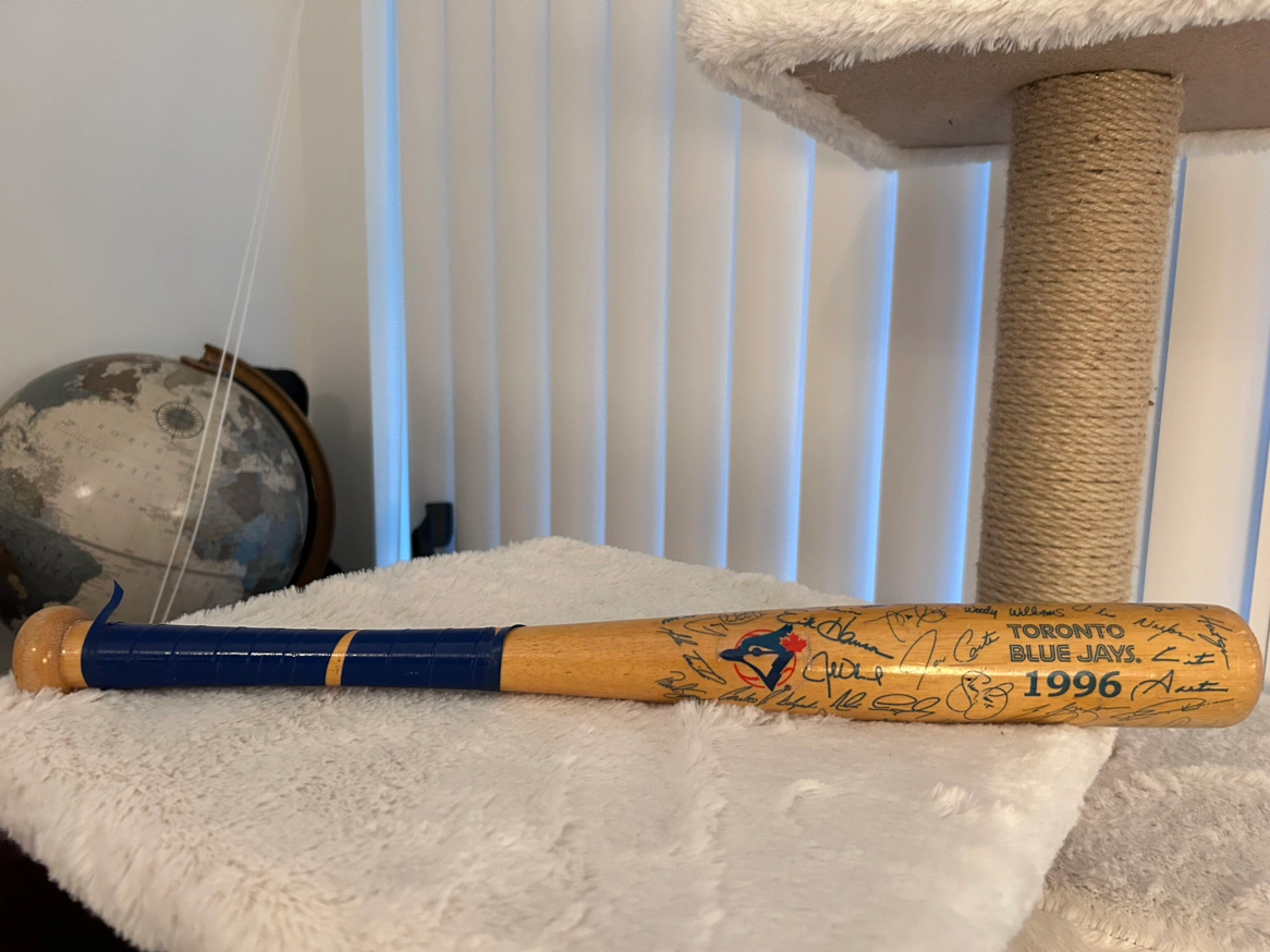 Buy & SellAutographed Toronto Blue Jays 1996 souvenir batAutographed Toronto Blue Jays 1996 souvenir bat$15Autographed Toronto Blue Jays 1996 souvenir bat (wood) for super fans!WHERE TO MEETKing Street West & Spadina AvenueView MapSELLERHelenLiberty Village814 reviews1 chats·0 favorites·35 viewsSEND CHAT TO SELLERHi Helen! I’m interested in your listing.Hi Helen! I’m interested in your listing.Get the Karrot app to chatSign In to chat
