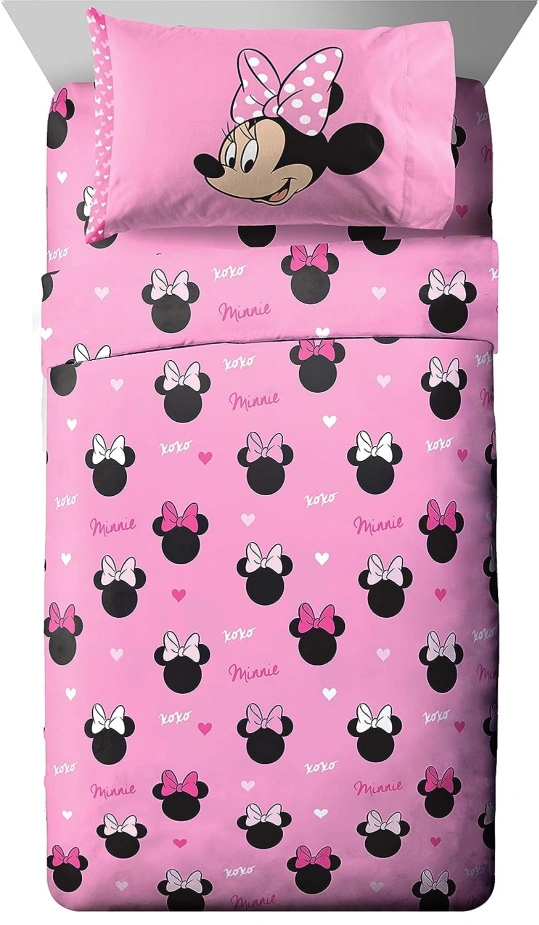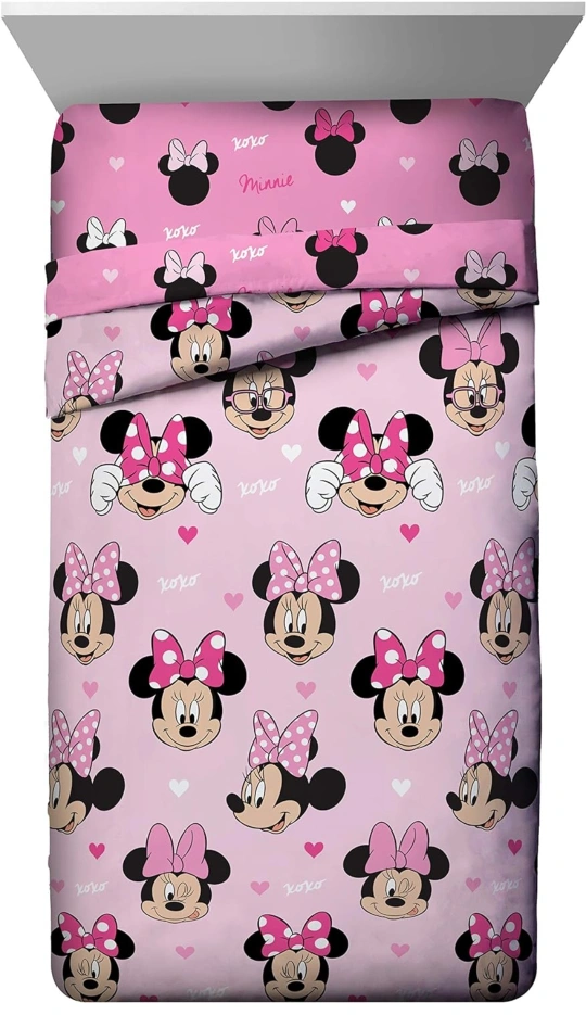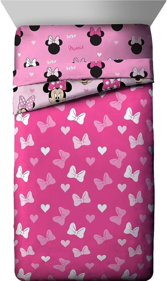 *BRAND NEW* Jay Franco Disney Minnie Mouse Hearts N Love 4 Piece Twin Bed Set - Includes Reversible Comforter & Sheet Set - Super Soft Fade Resistant Microfiber - (Official Disney Product)