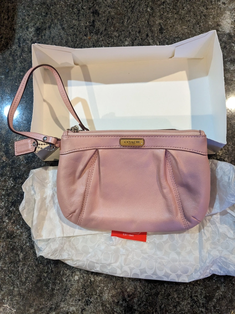Coach Blush Pink Leather Wristlet. it is in excellent condition with a box . Measures 5.5 x 7.5 inches.