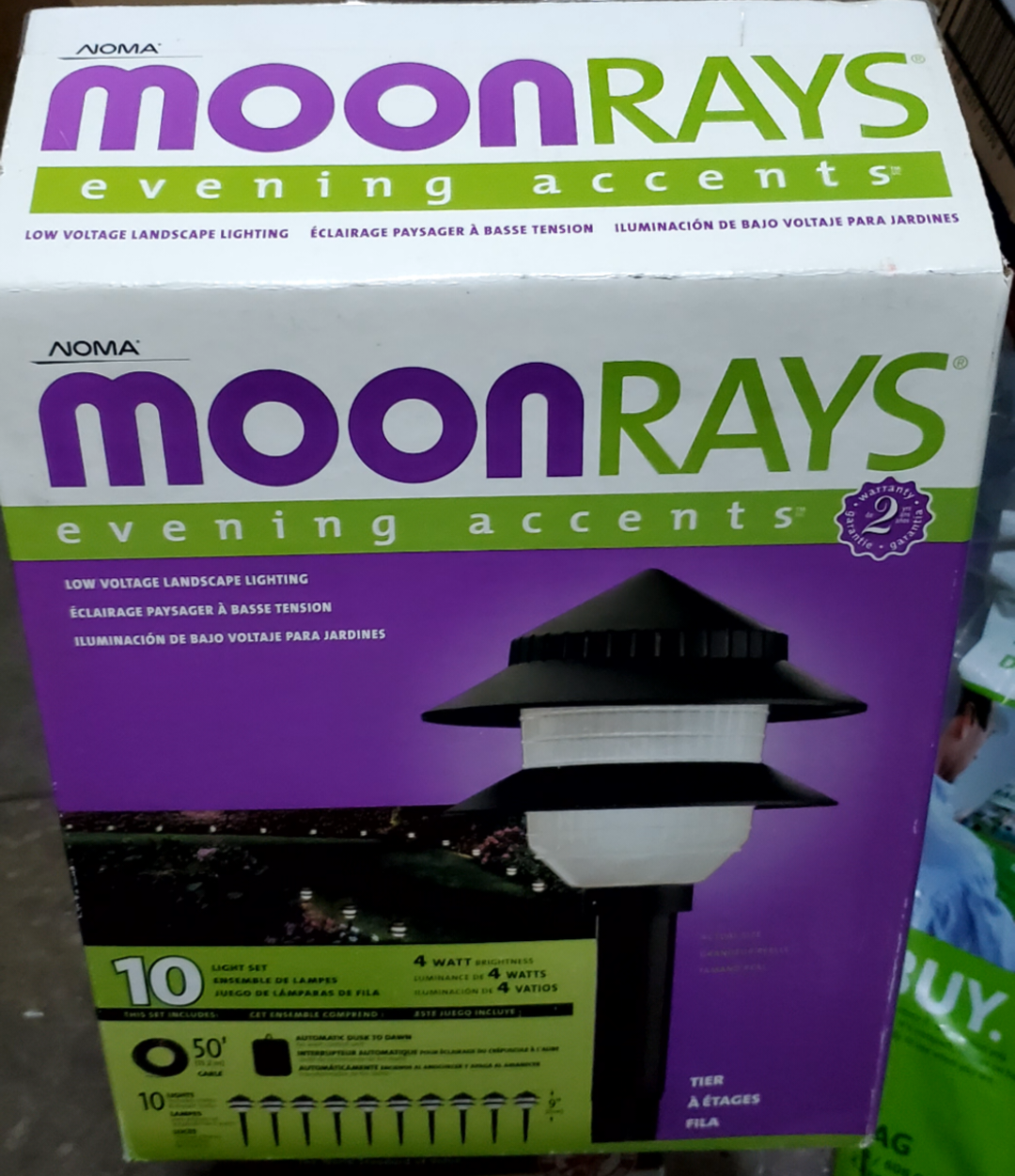 Bring some light to your path or garden with these Noma Tier lights! Brighter and more dependable than solar powered units! Still in the original box together with the instructions. Locate them near a power outlet and control the lights with the waterproof control unit.