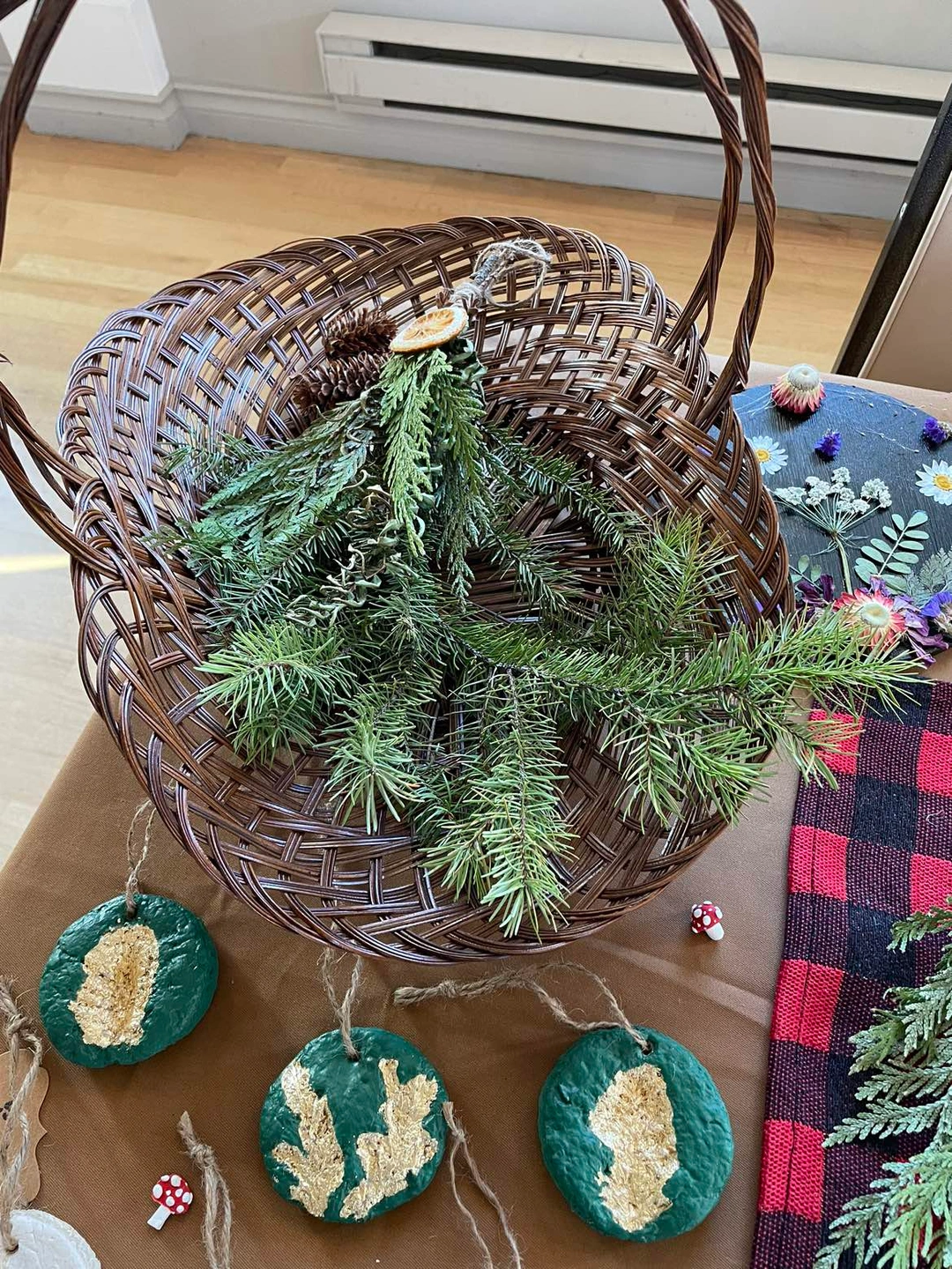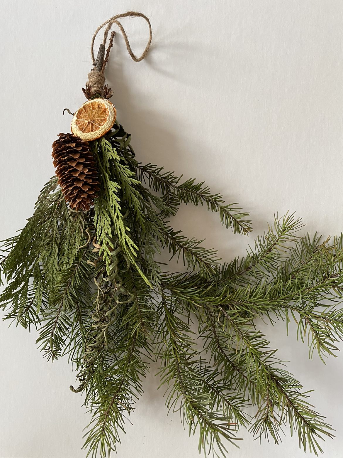 Foraged locally only from pieces found on the forest floor to reduce impact on the forest. It’s a mix of cedars and pines, with a fern, pine one, and dried orange.