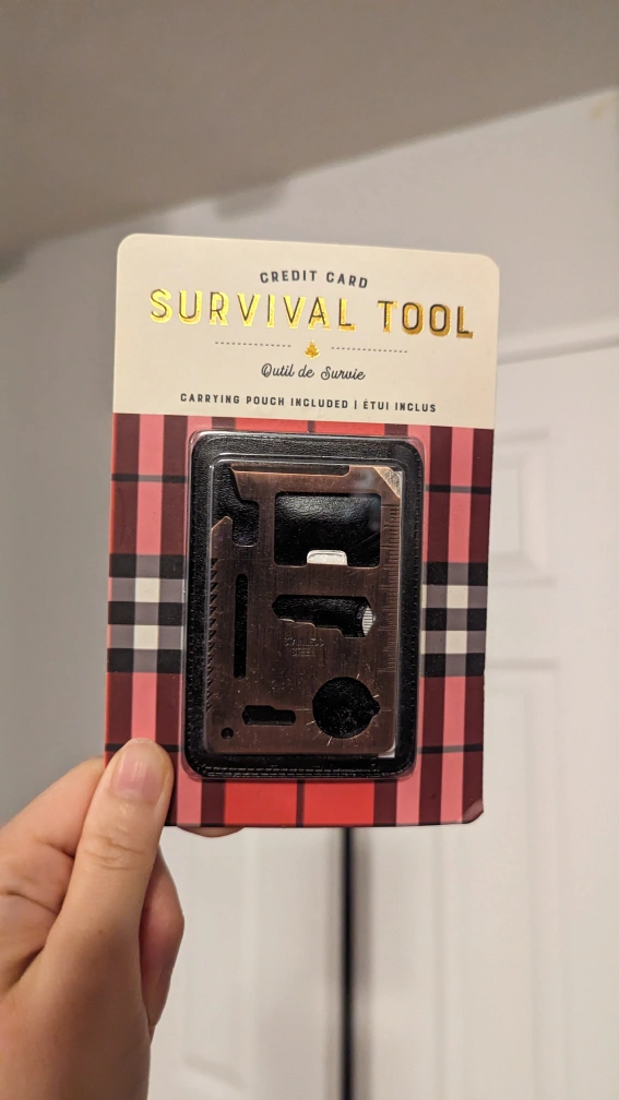 A credit card sized survival tool that has 10 different functions. got this for Christmas last year and never ended up using it. seems like a great gift for someone more handy than me.