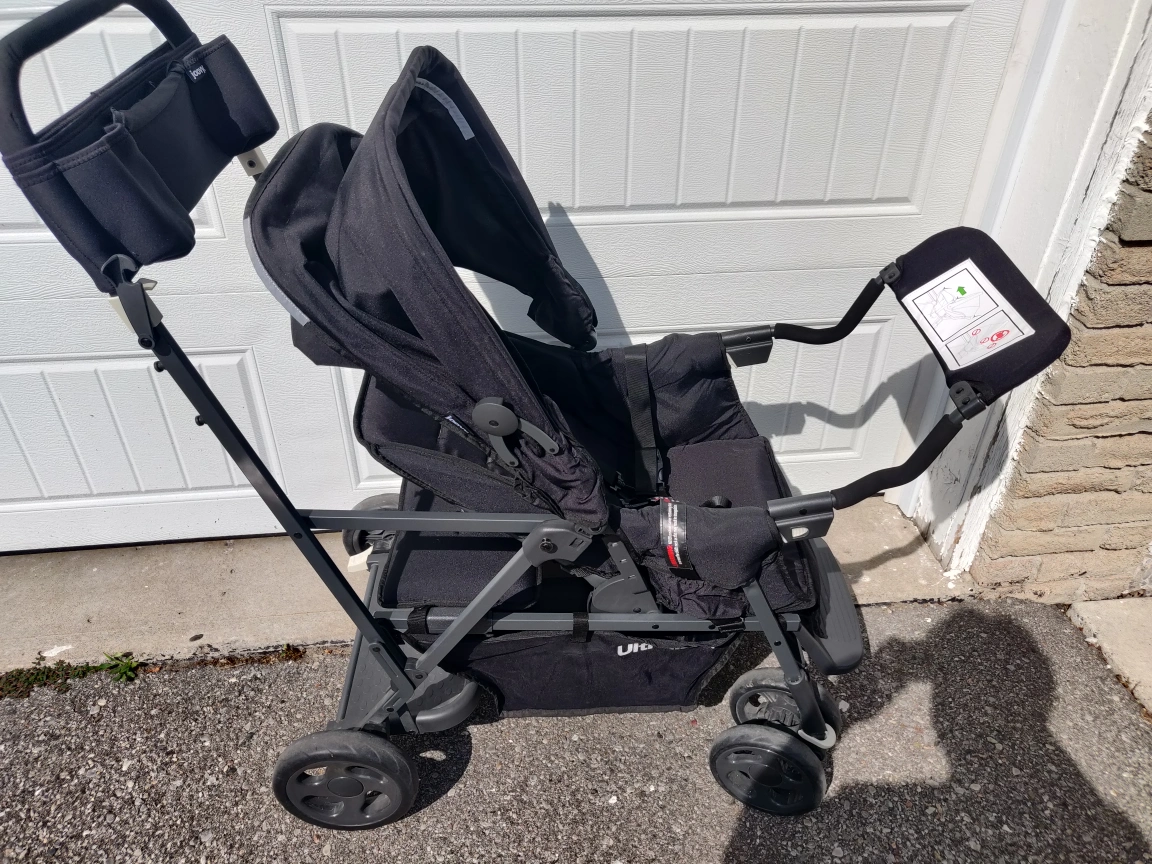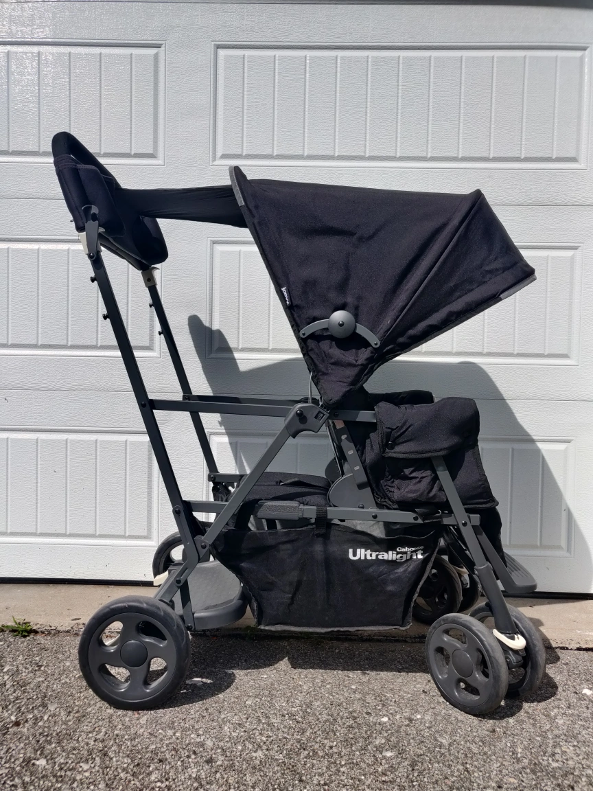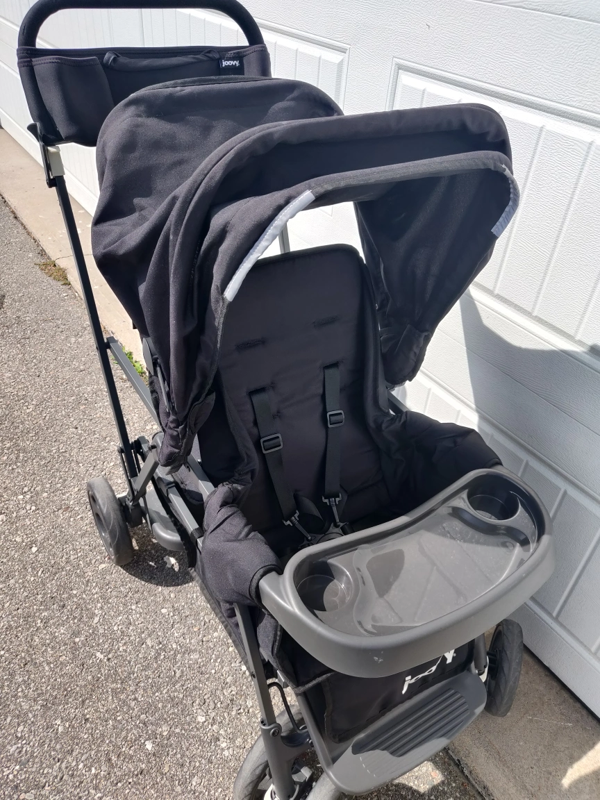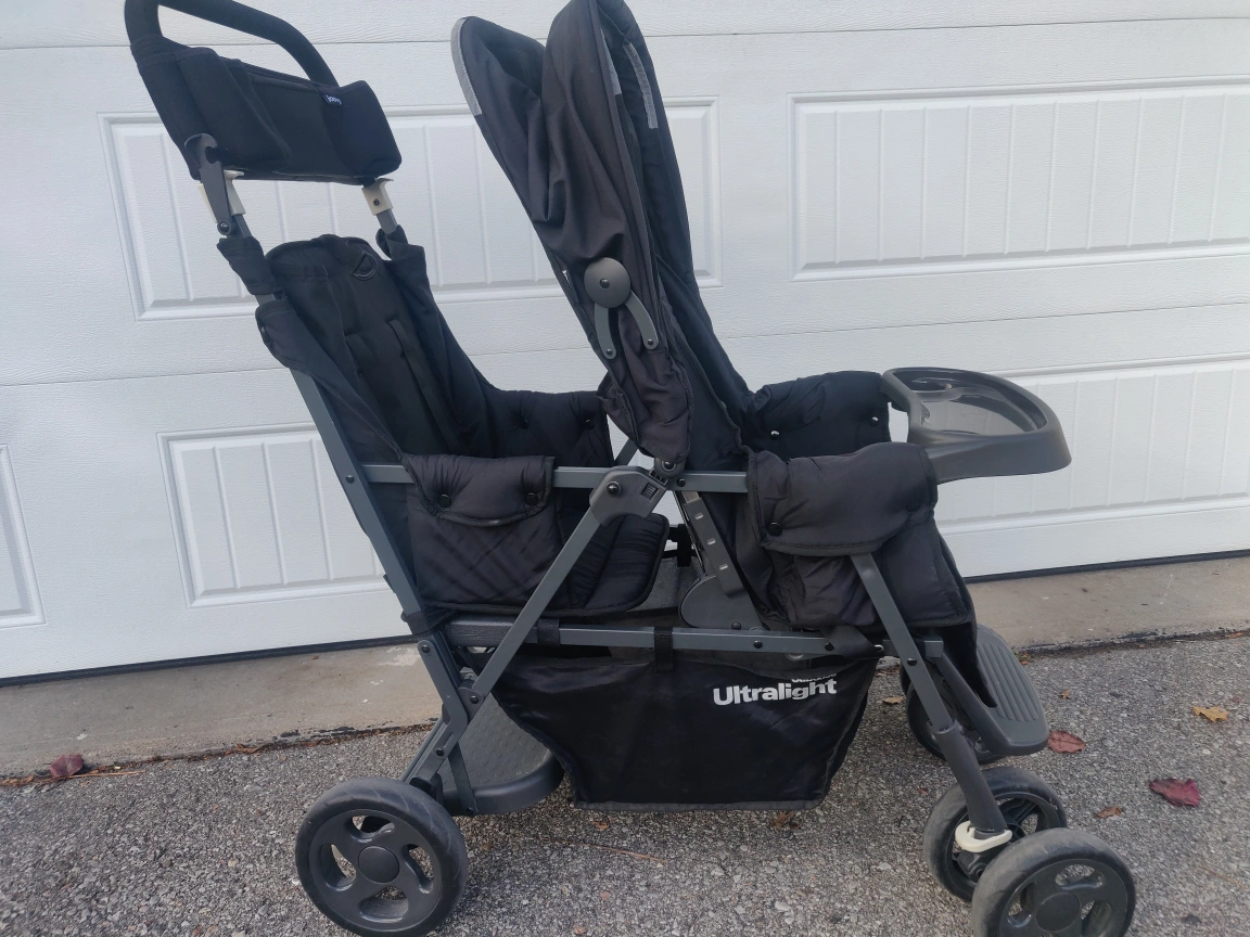 Lightly used Joovy Ultralight Graphite double stroller with rear seat (bought separately)