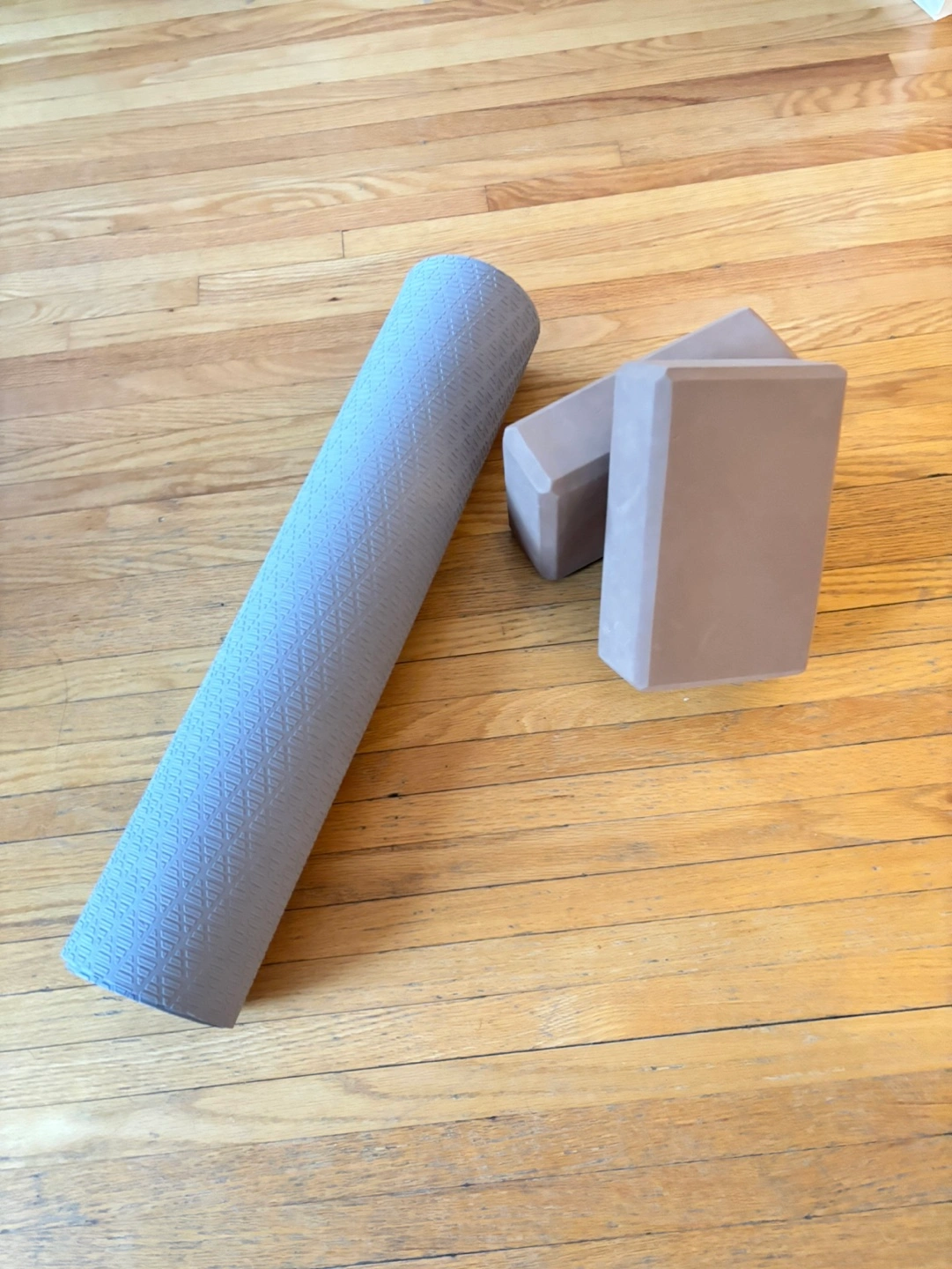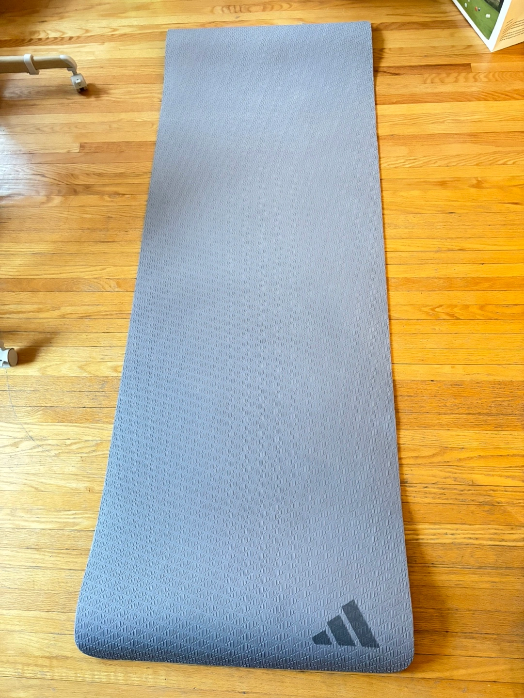 Grey Adidas yoga mat (4mm) and two foam blocks. Great for yoga and pilates. Slightly used.