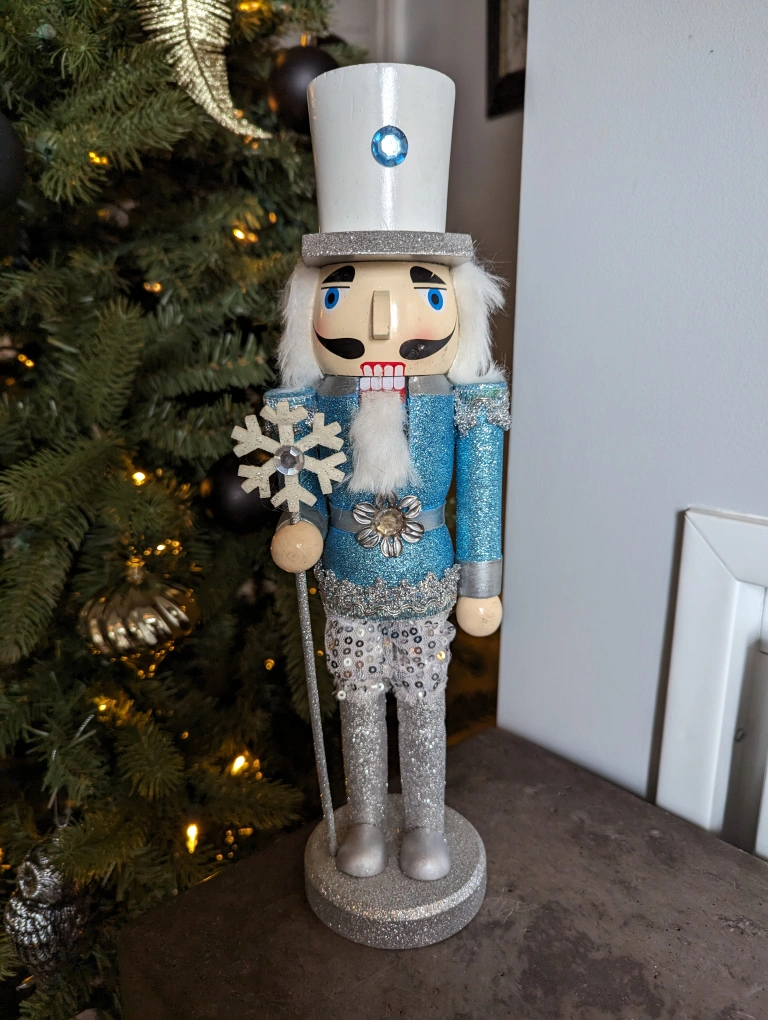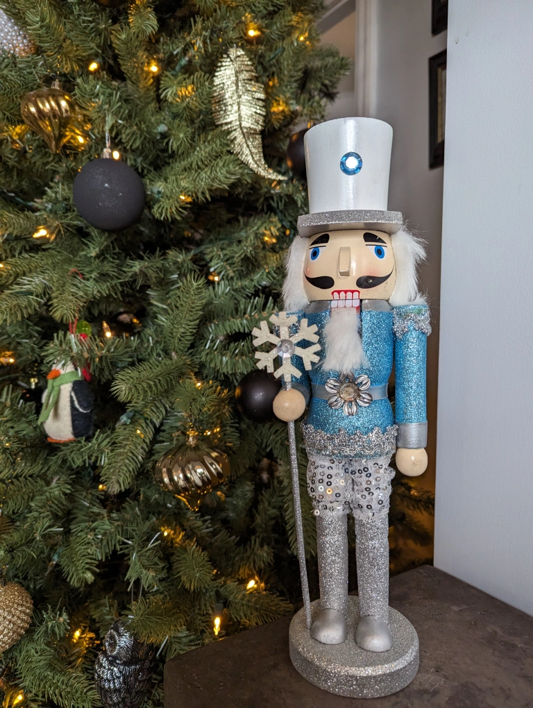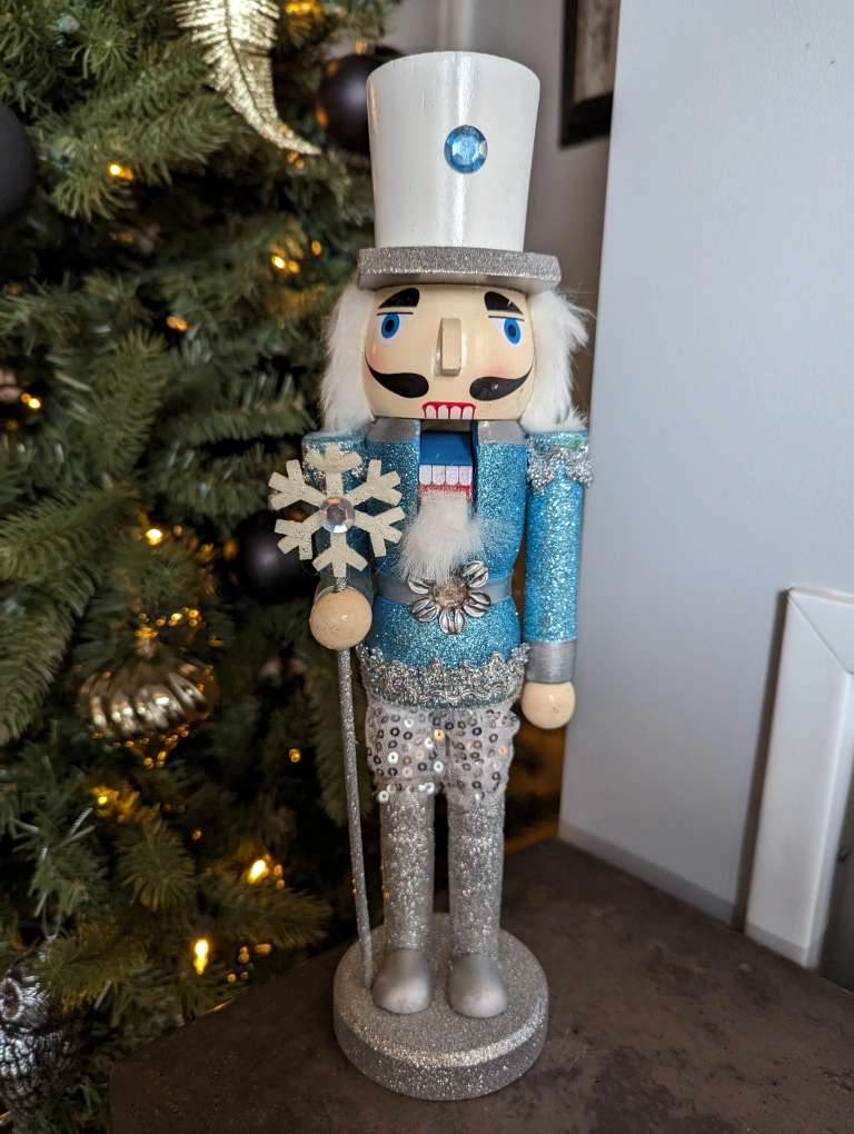 We are changing up our holiday decor this year and looking to rehome this blue and silver Nutcracker. He is in great condition and ready to stand guard over your Christmas decor this year.