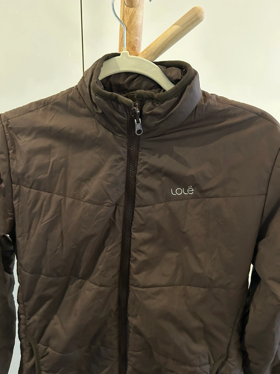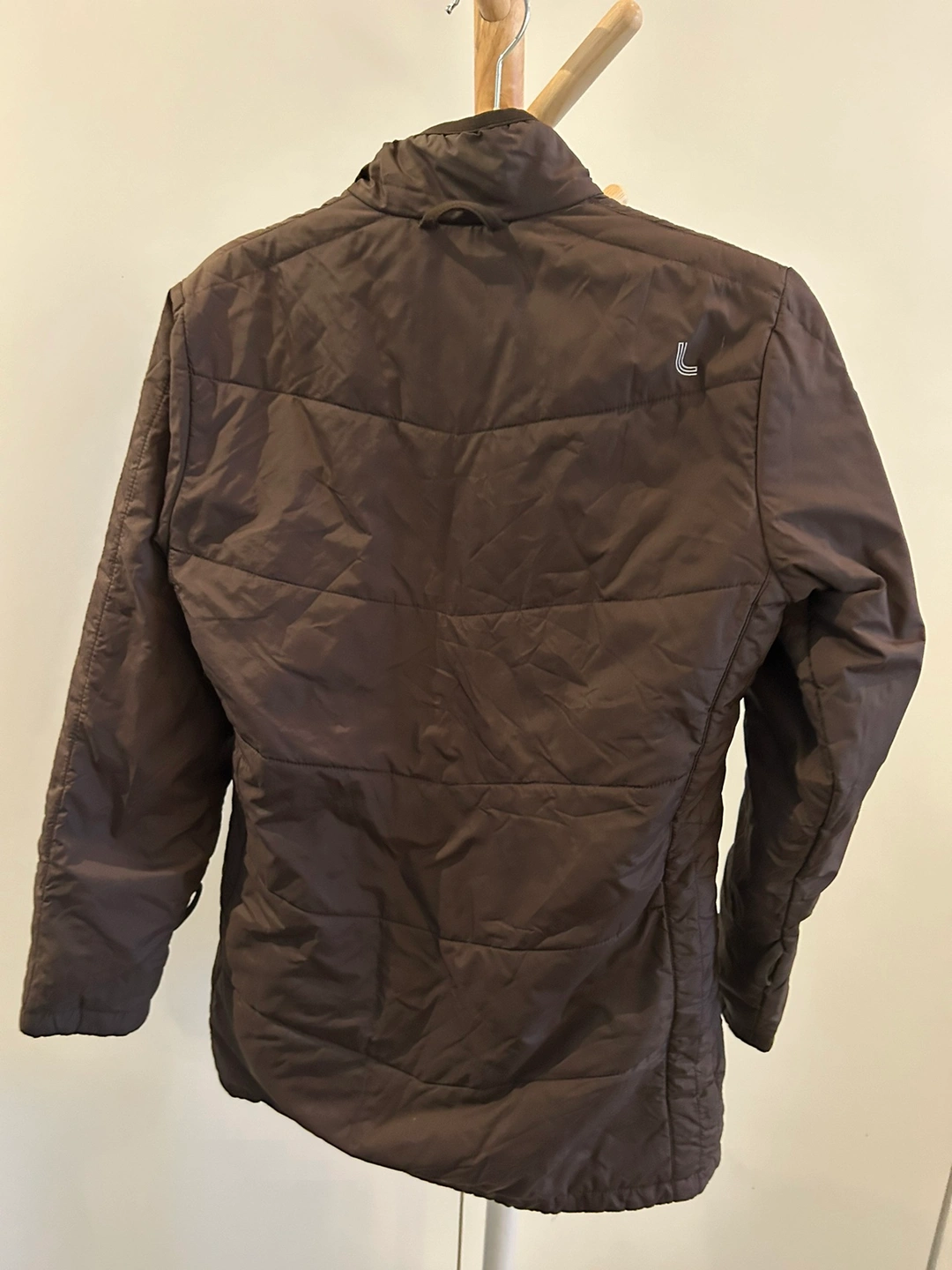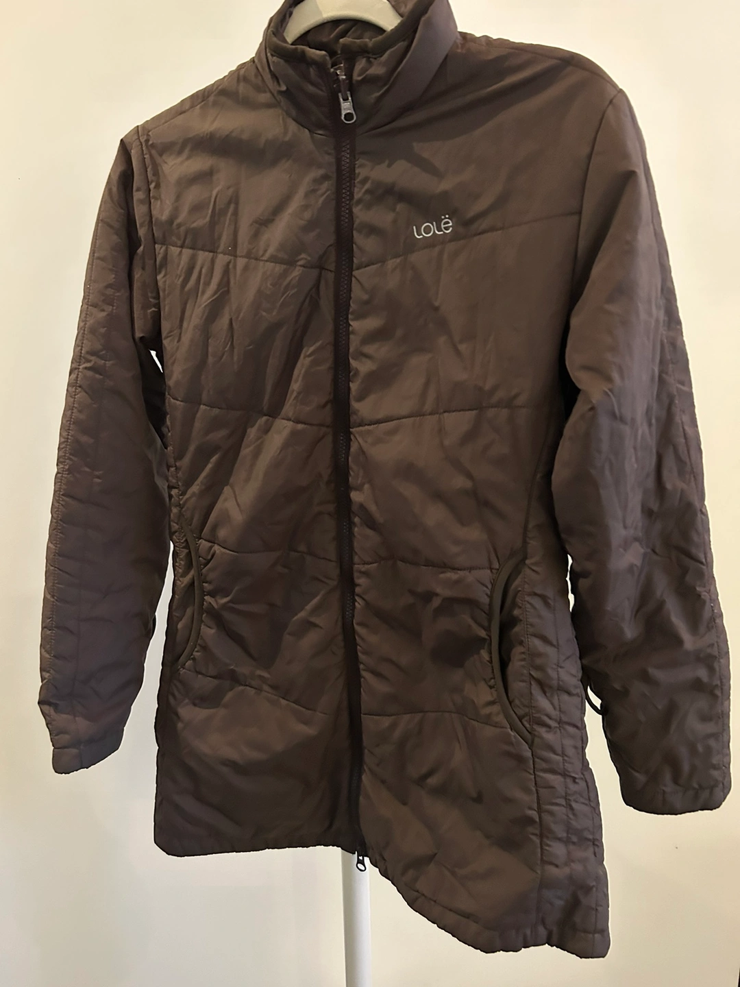 Light zip up jacket. Nice taupe colour. Like new. Size 6. Pockets. Nylon. Great for layering. Retails approx 199
