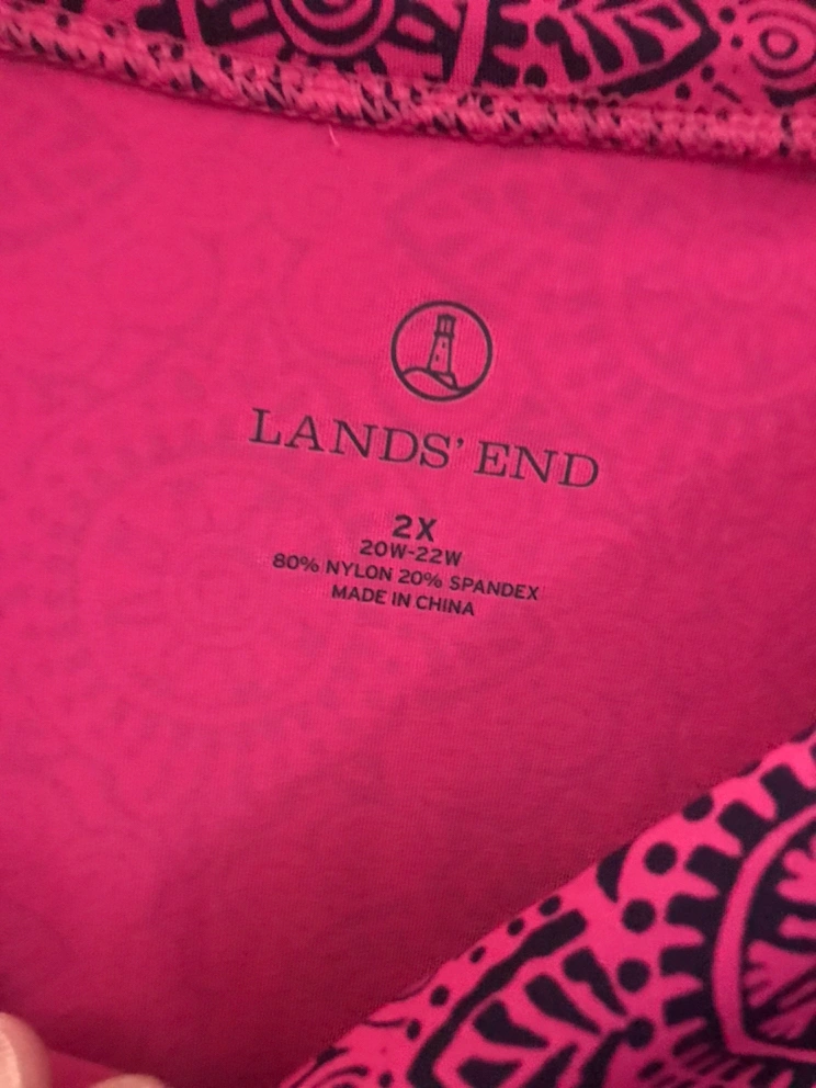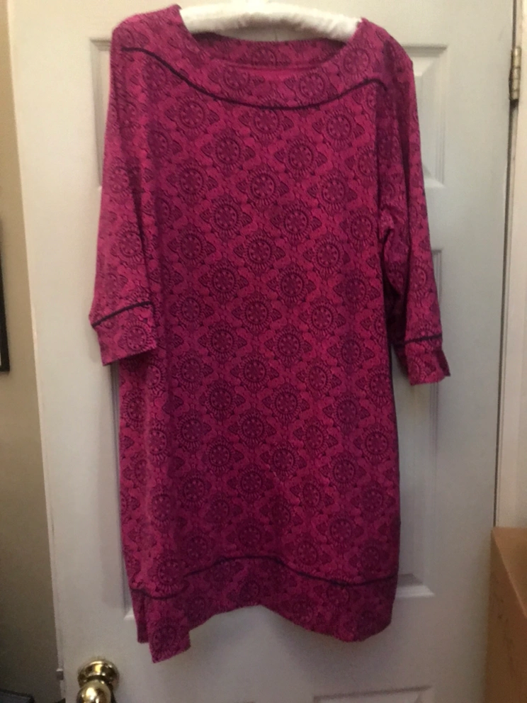 NEW. Never worn. Land’s End pullover dress with 3/4 sleeves. Pink with blue pattern. 80% nylon and 20% spandex. Pet-free, smoke free home. Yonge/Davisville pick up