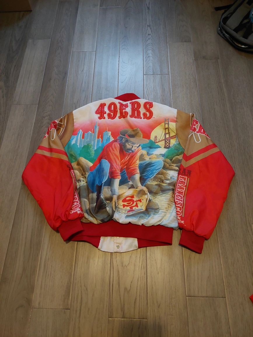 Vintage mens NFL San Francisco 49ers fanimation gold miner football chalkline jacket