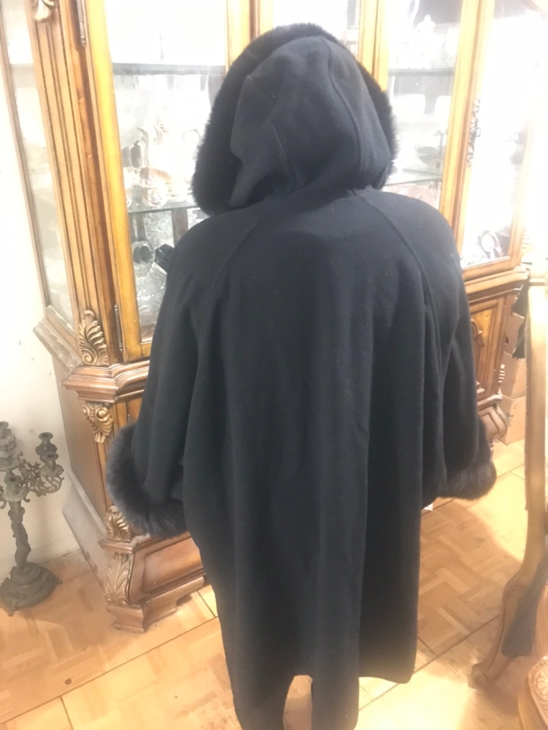 Beautiful very warm women’s coat with hood, made of a blend of virgin wool and cashmere.