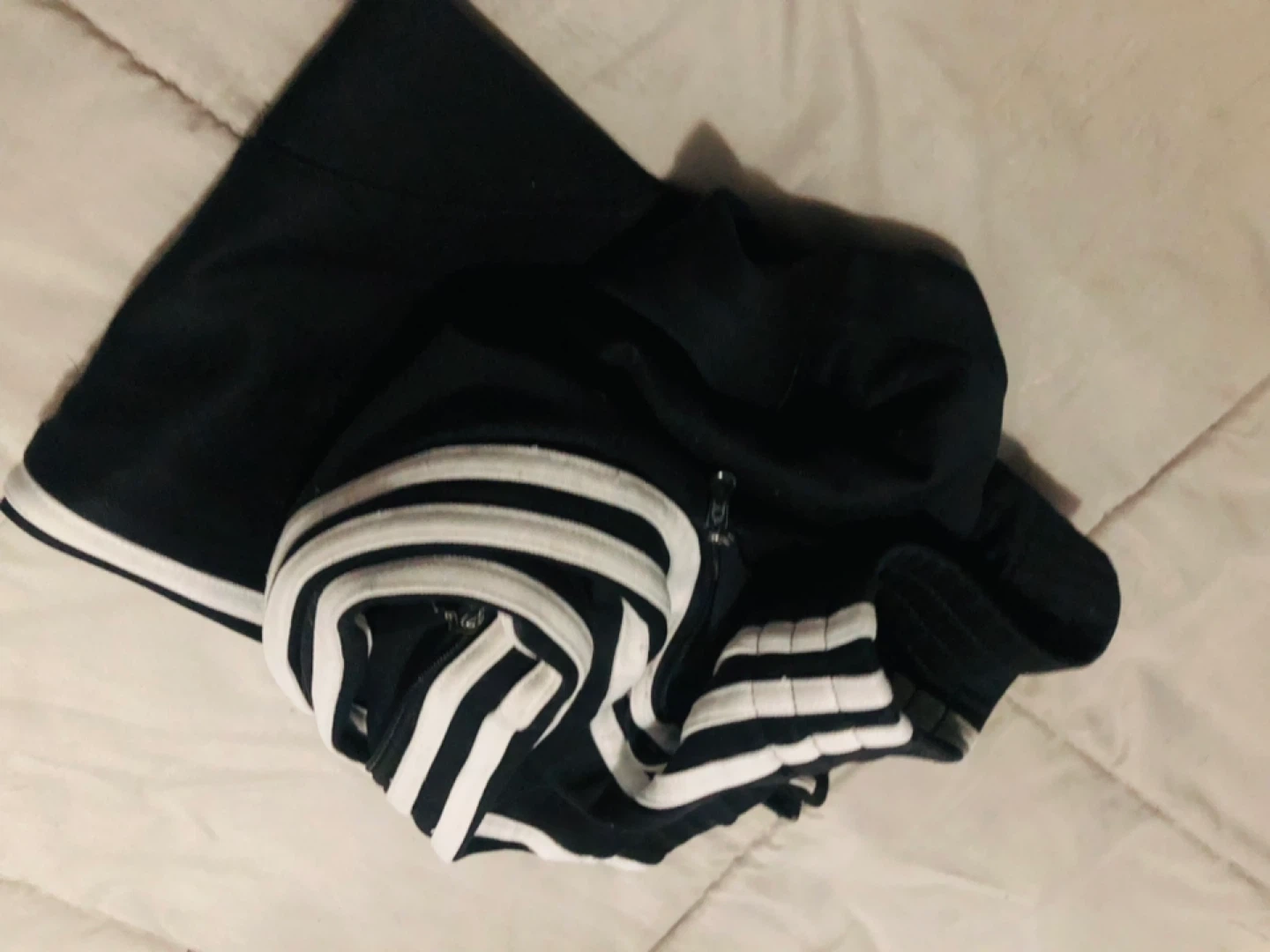 This is an Adidas track pants with the classic three stripes. It's black with white stripes.