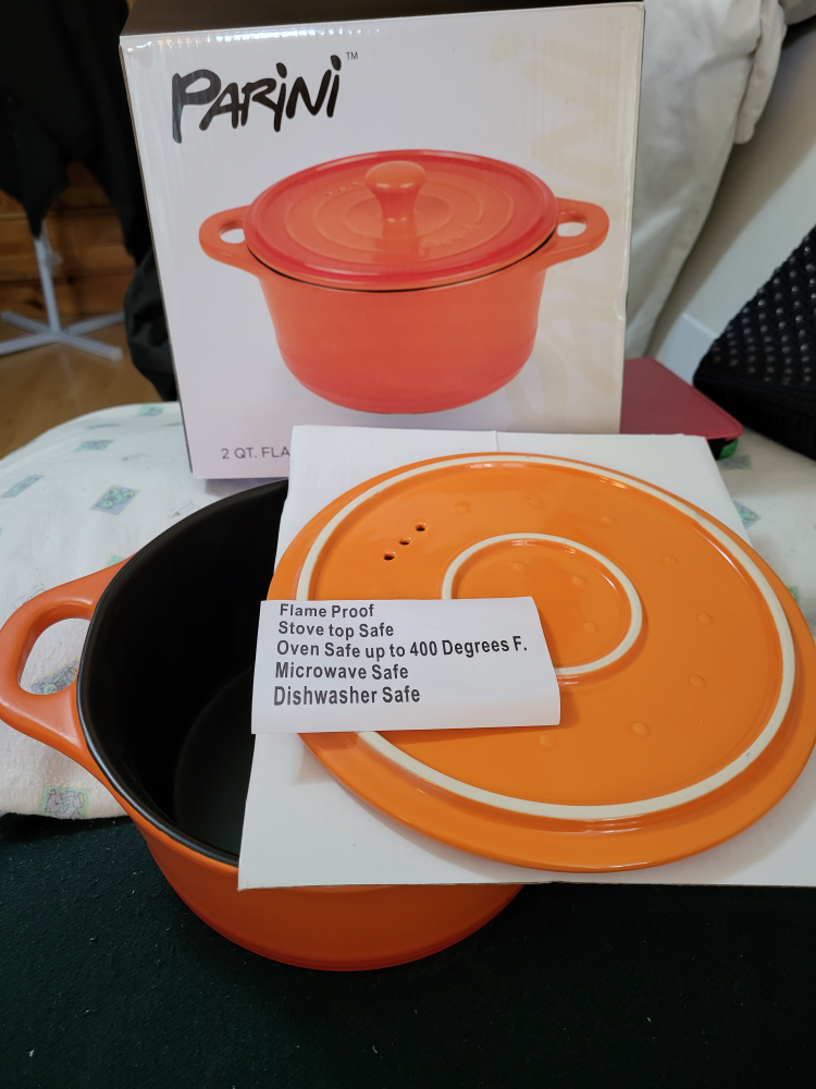 PARINI 2QT FLAMEPROOF CASSEROLE DISH WITH LID (ORANGE)