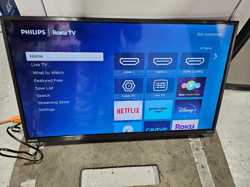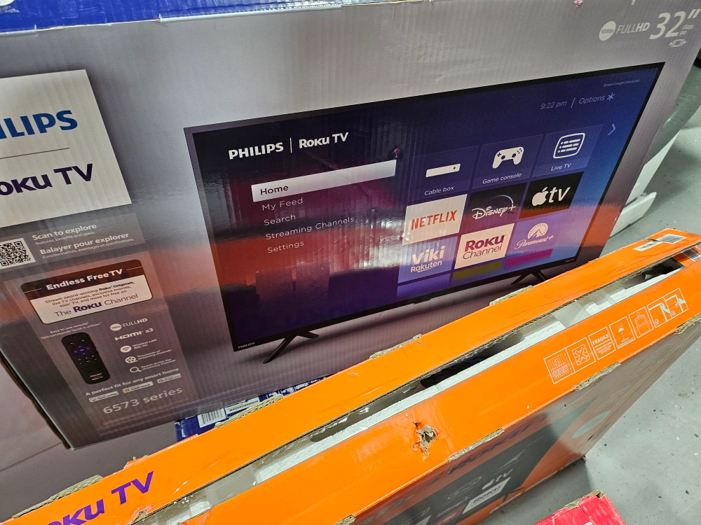 This is an open box PHILIPS 32" 4K ROKU Smart LED TV.