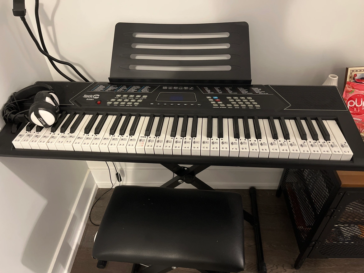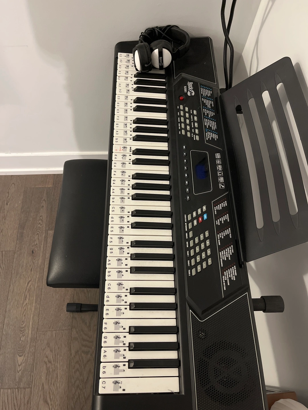 RockJam 61 Key Keyboard Piano with Pitch Bend, Keyboard Stand, Piano Bench and Headphones.