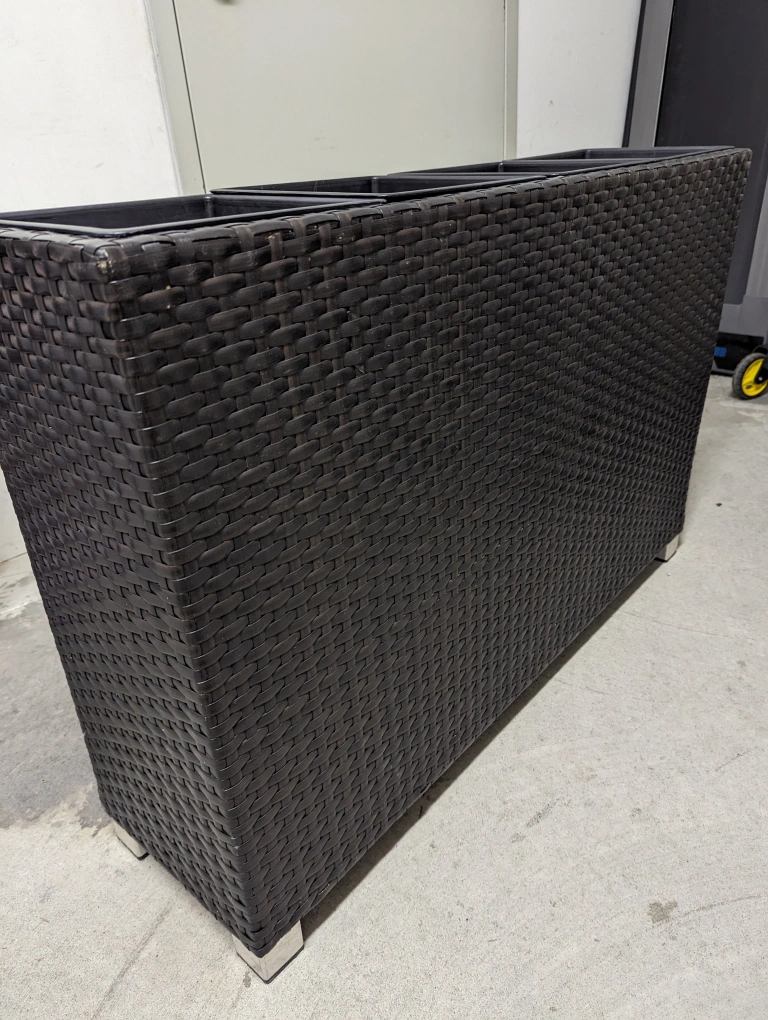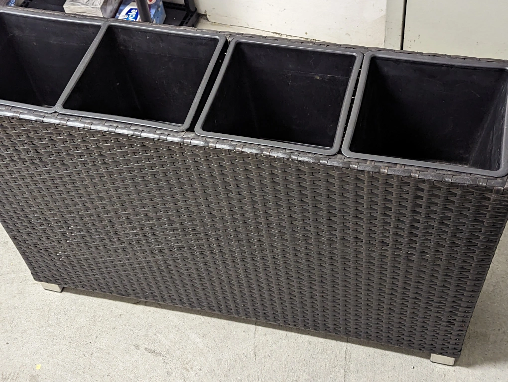 A planter with 4 pots for plants that can be easily removed -- each pot is 9 inches deep. Overall the planter is quite light and easy to move around.