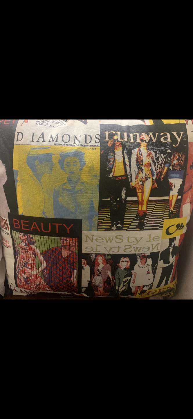 Eye catching 1 of a Kind glamor print sofa, bedroom or floor cushion with solid black on the reverse-great for fashion, beauty or designer person-definitely a conversation piece-u can feel the solid support-great for breakfast in bed -open to flexible meet up, subway