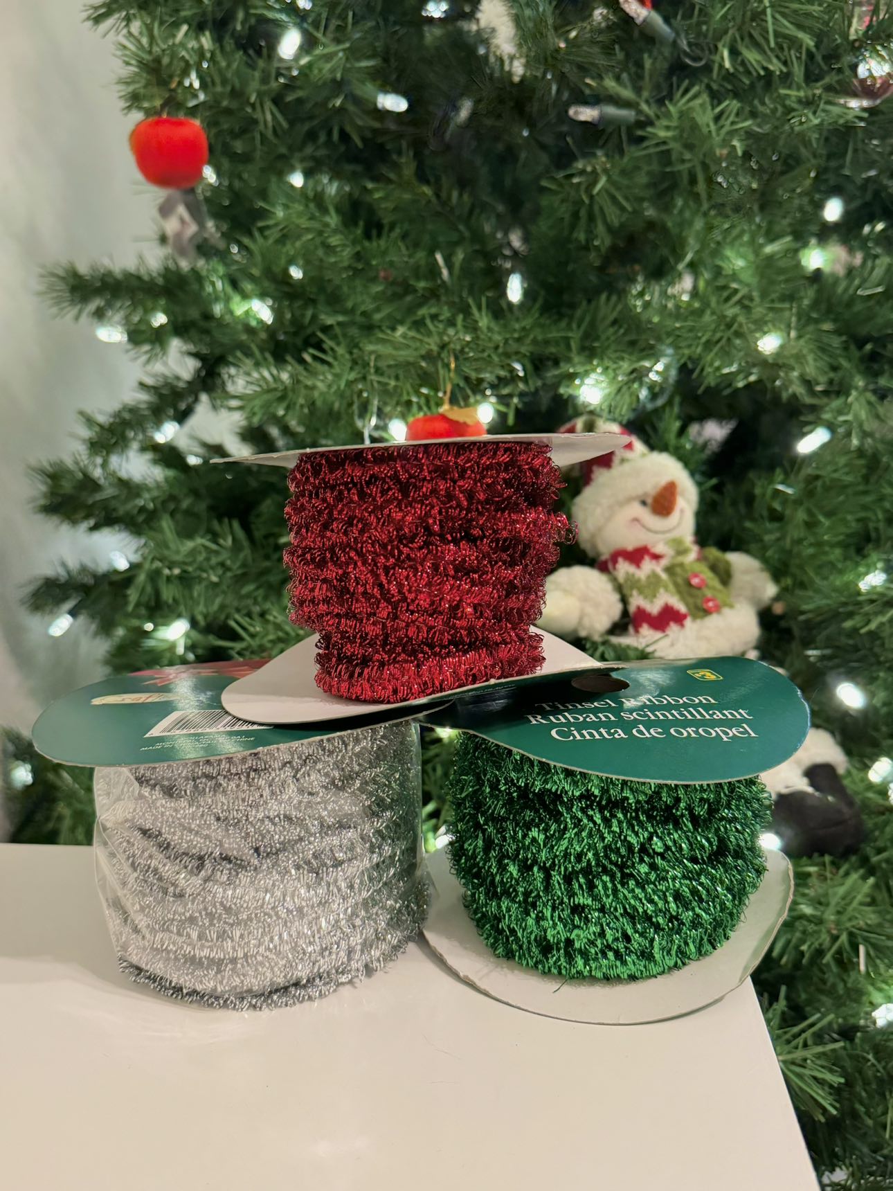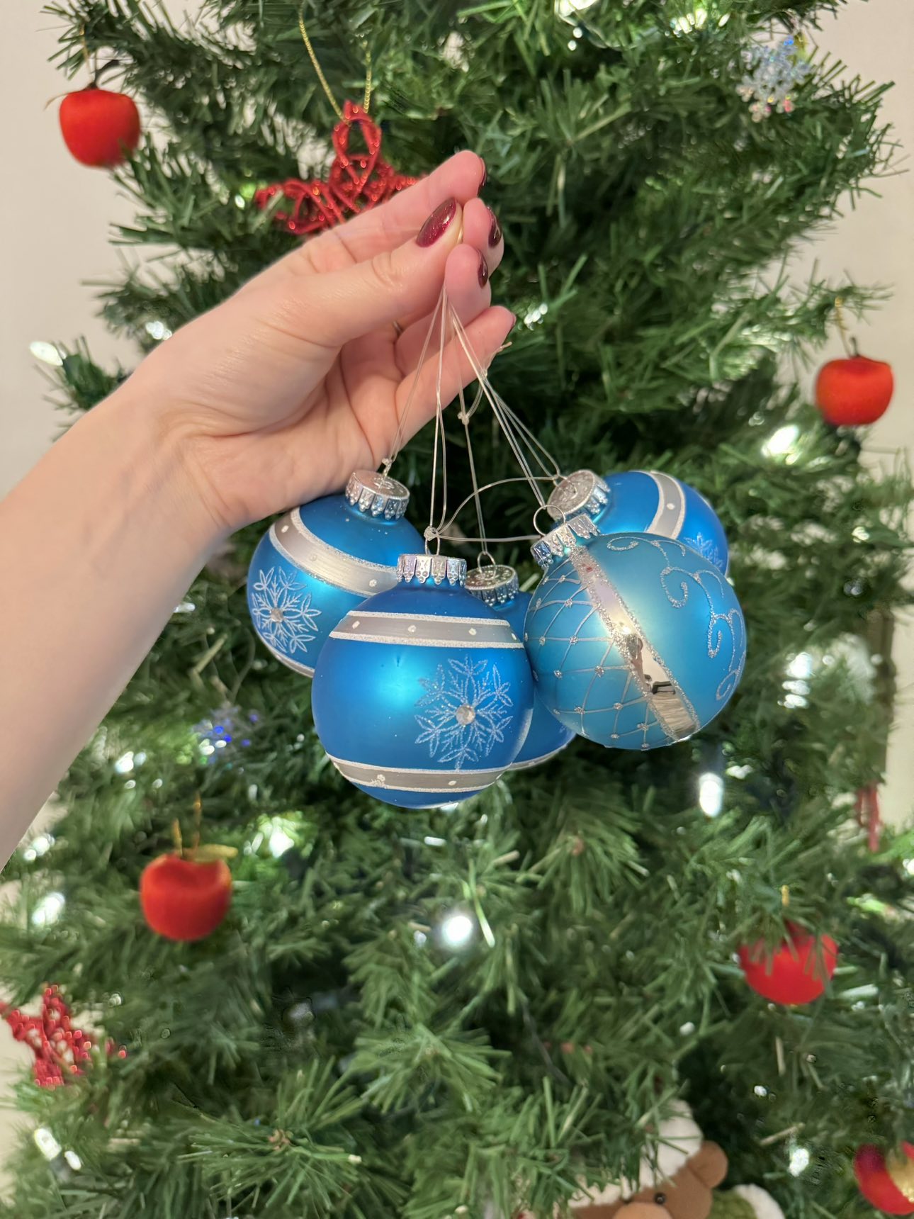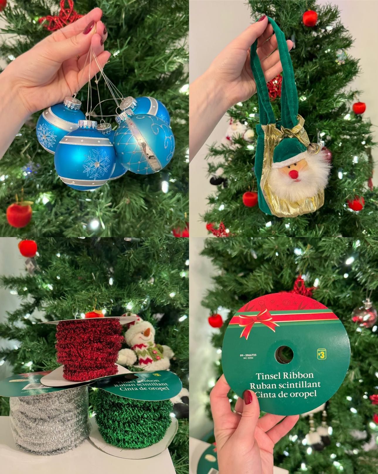 327• Blue Christmas balls - set of 5 • Christmas Tinsel Garland - Silver (New), green (almost full), Red (half) • Mini Santa Claus bag - 1 pc Only pick up - Sheppard Ave W & Bathurst