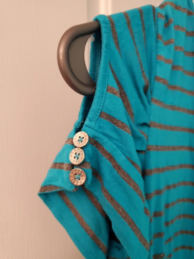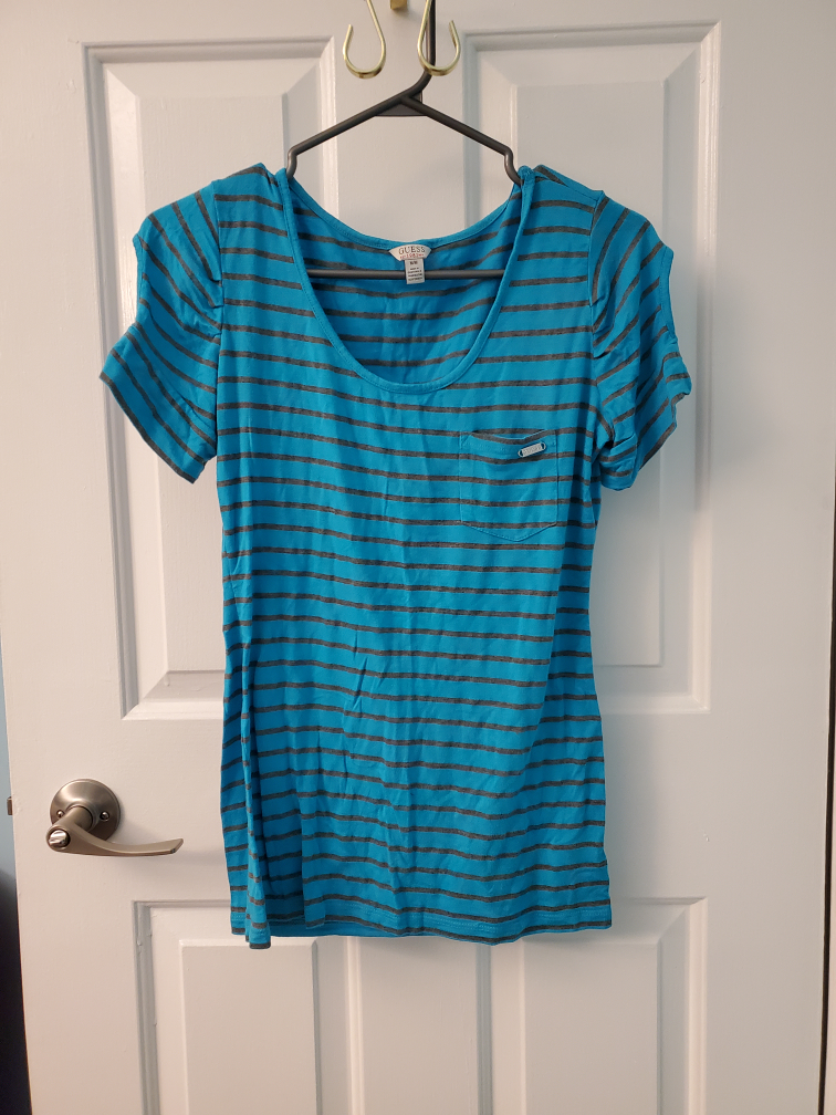 Guess strip shirt key hole shoulders size M also, fits small size.