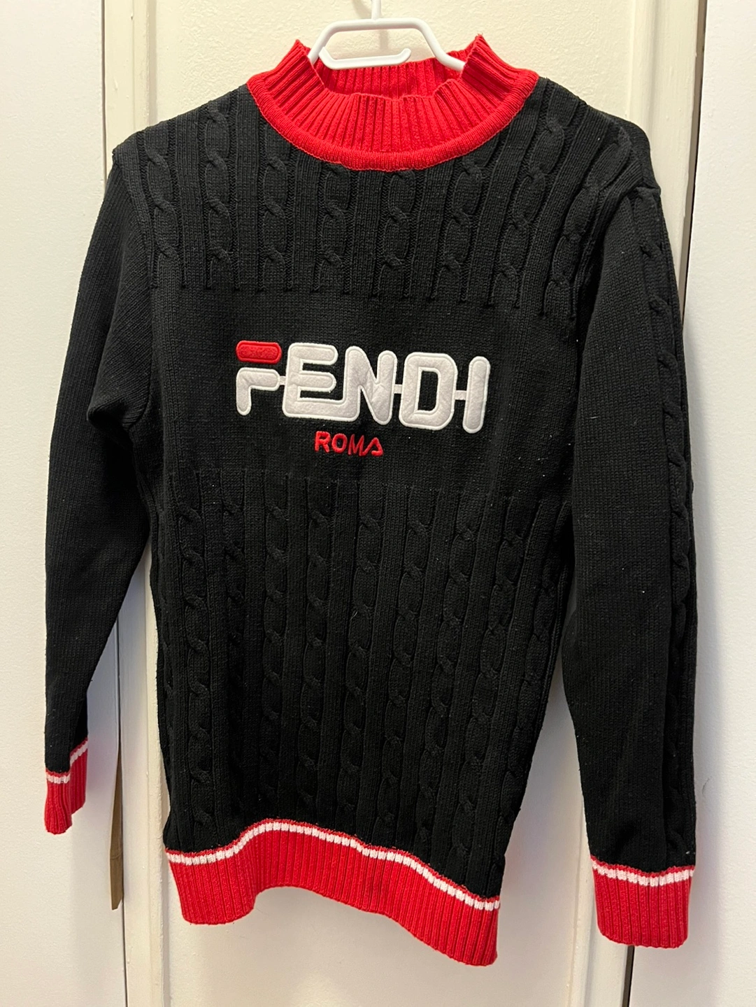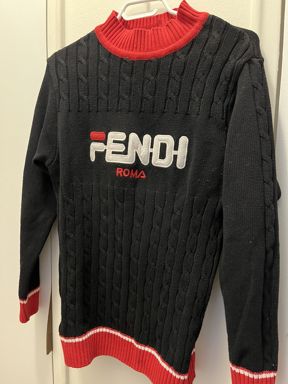Vintage Fendi sweater. Says size large but fits smaller like a medium. Some minor pilling on sweater.