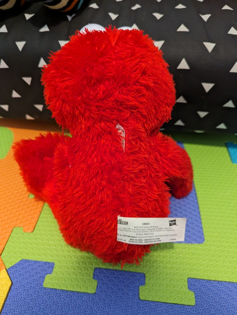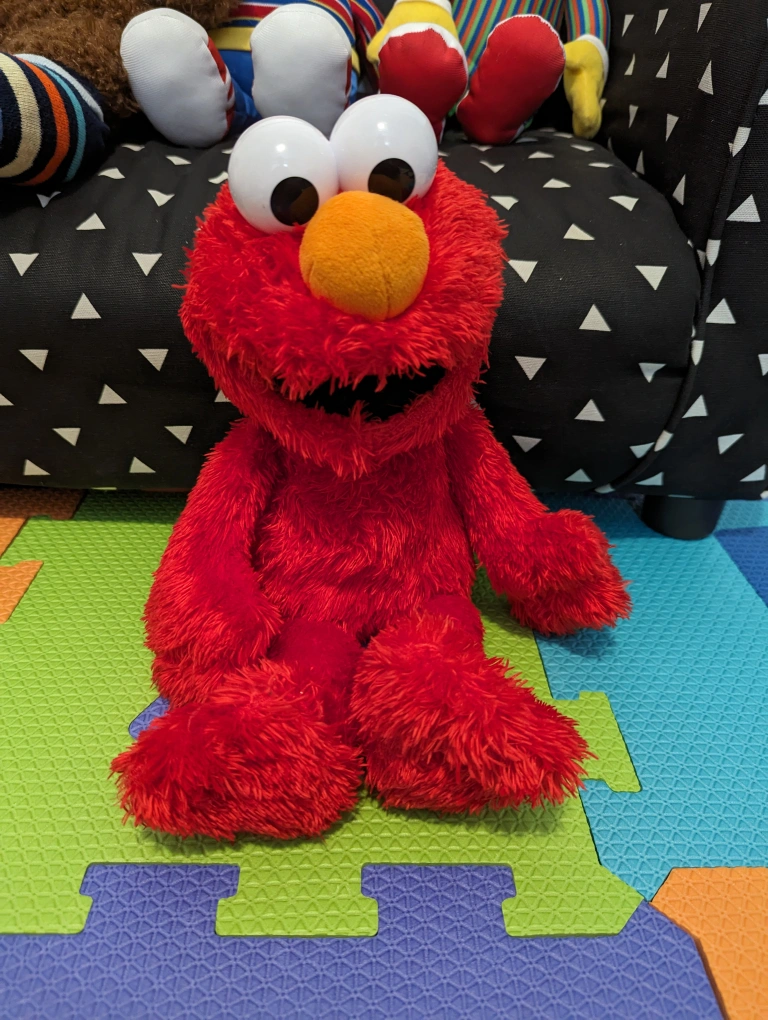 Does not come with batteries. Works perfectly fine and Elmo will sing and it also vibrates. porch pickup : Markham West (John Street & Bayview)