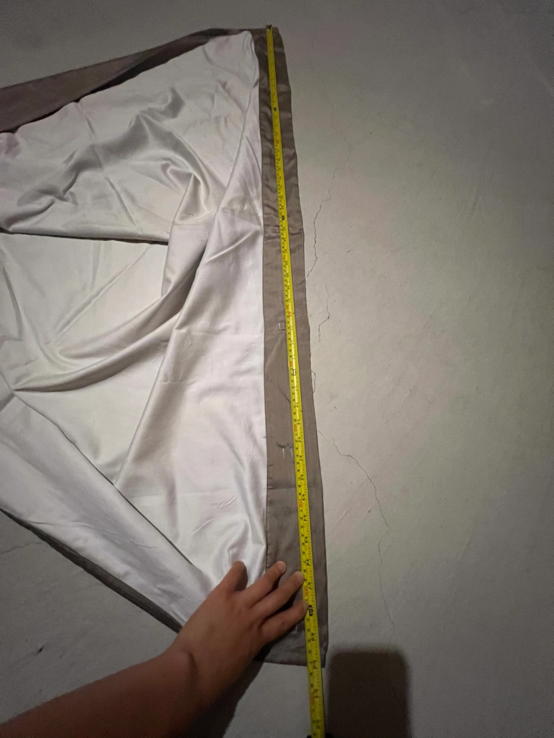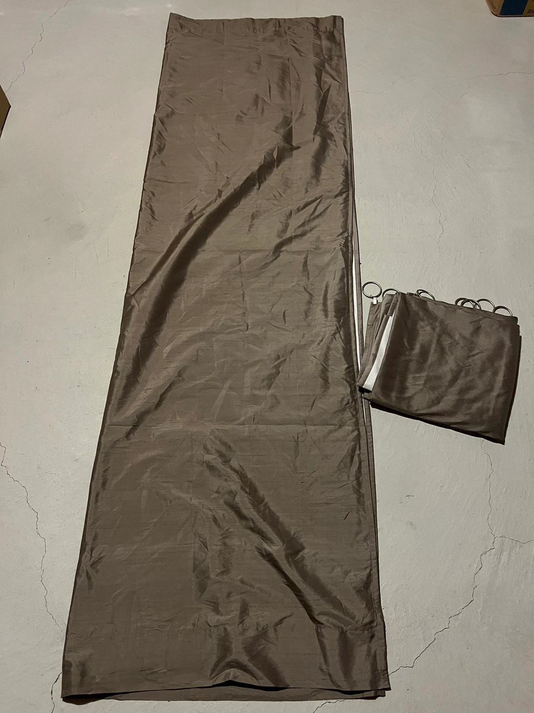 107This is an elegant, luxurious and timeless look! Great condition and just needs to be cleaned. 100% silk in the front; 100% cotton in the back.
