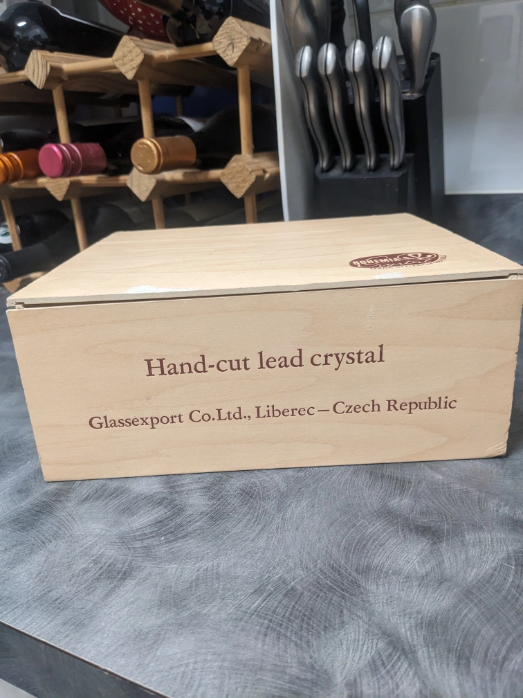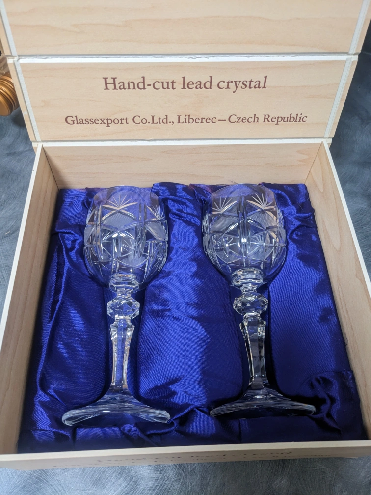 Never used comes in box. Beautiful hand cut lead crystal glasses.