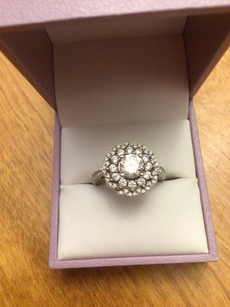 Michael Hill silver ring. Size 7. With sparkly cubic zirconias. Bought for myself, but got a gift the same one from my daughter. Love it! But not need two of them.